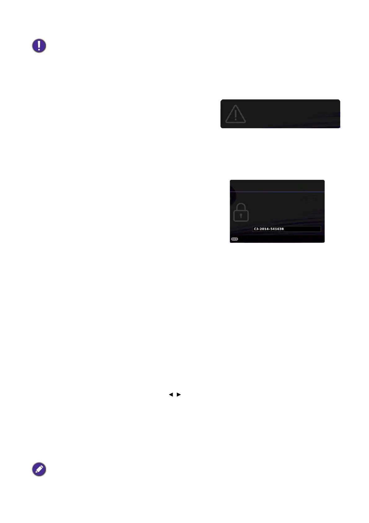 • Once a password has been set and the power on lock is activated, the projector cannot be used unless the