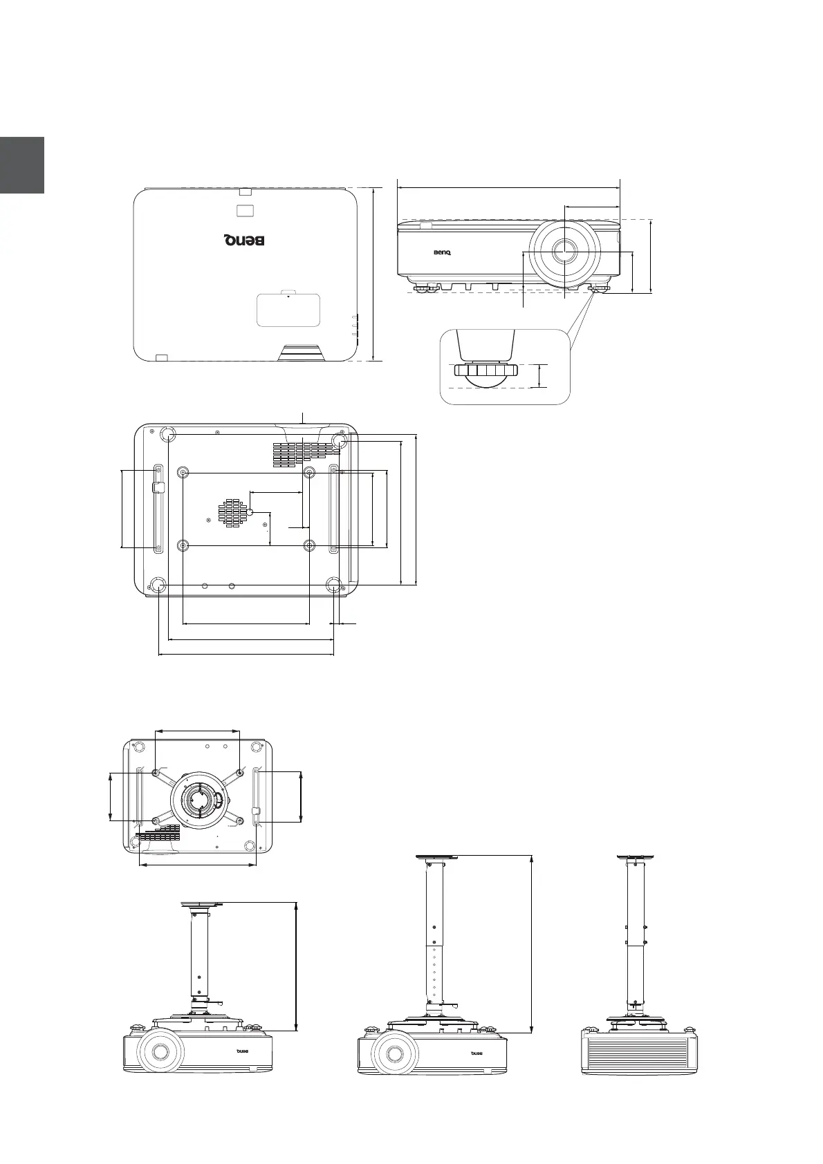 BenQ LU951ST - 尺寸; 投影機尺寸; 天花板安裝圖