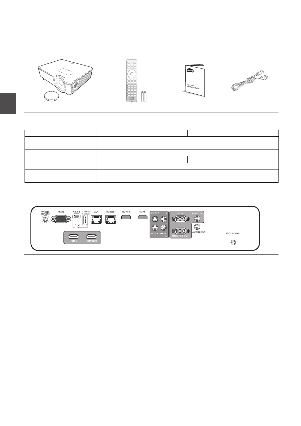 Projecteur Télécommande et piles Guide d’installation Cordon d’alimentation