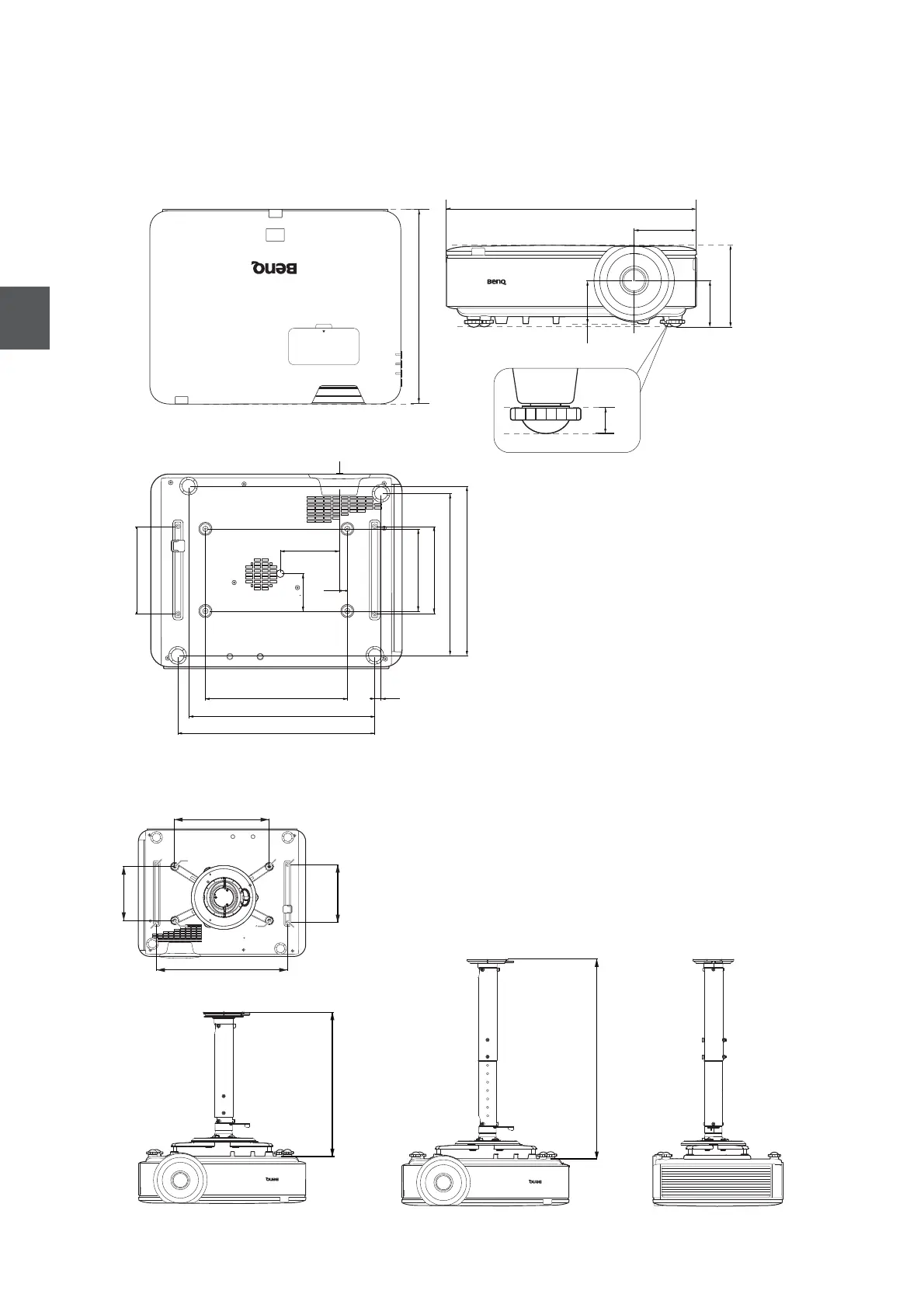 BenQ LU951ST - Dimensions; Dimensions de Projection; Diagramme de Configuration de Montage Au Plafond