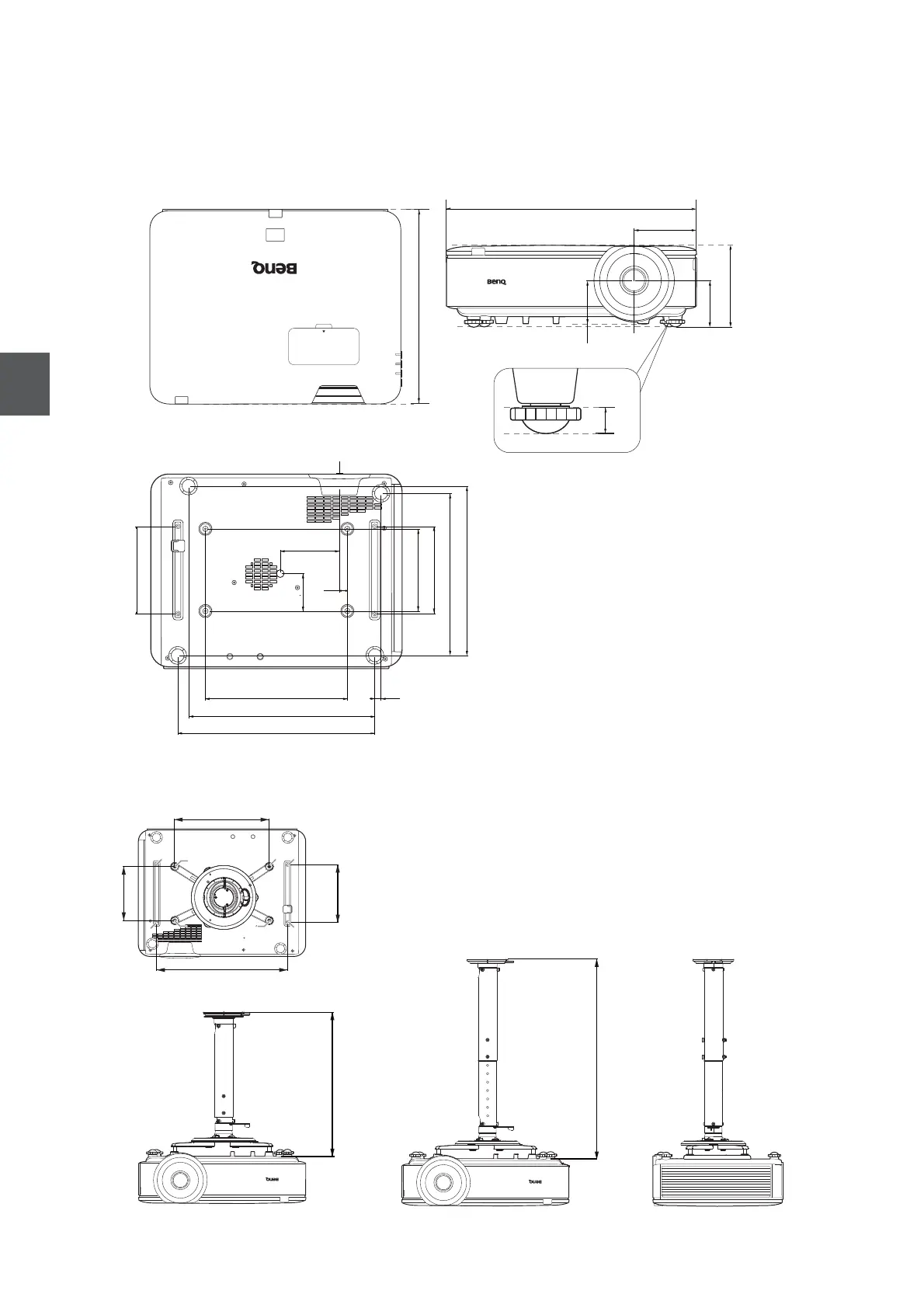 BenQ LU951ST - Abmessungen; Projektor Abmessungen; Deckenmontage Installationsabbildung