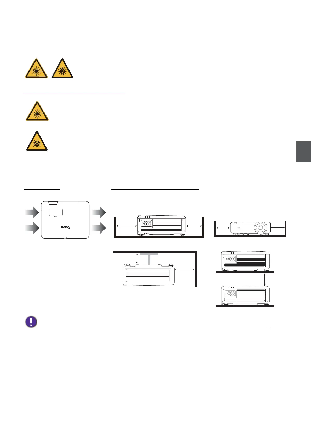 Per una corretta ventilazione del proiettore, assicurarsi di lasciare dello spazio