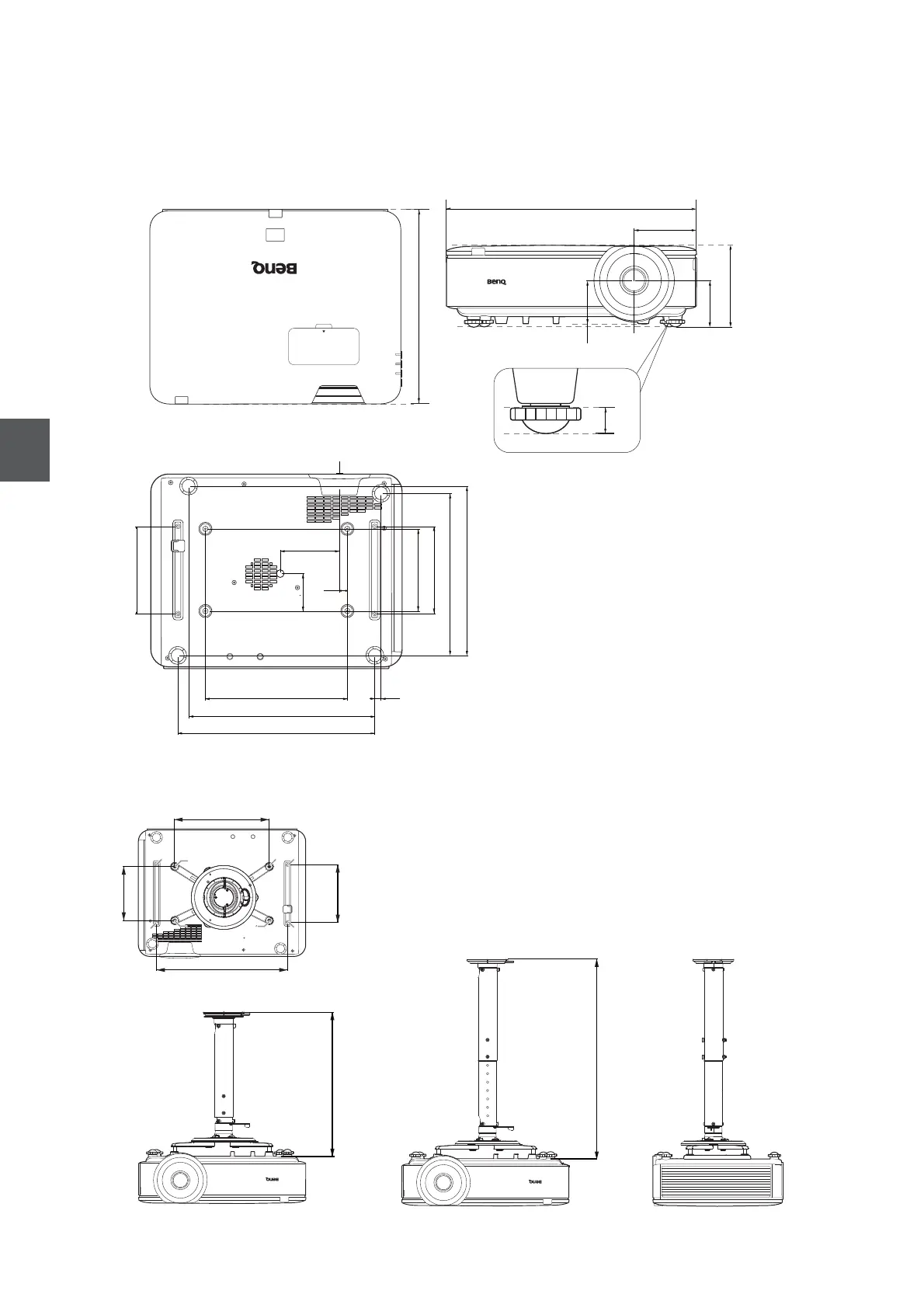 BenQ LU951ST - Dimensioni; Dimensioni del Proiettore; Schema Per Linstallazione a Soffitto