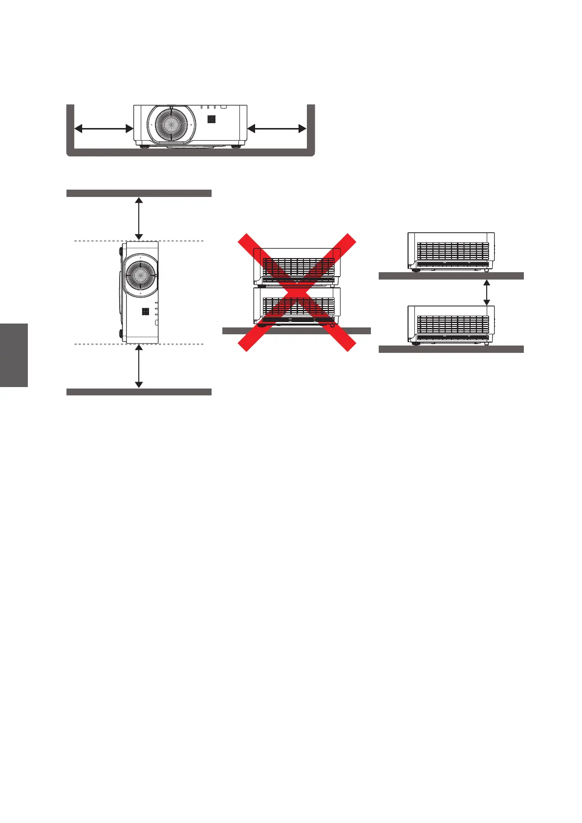 dass der Projektor heiße Luft von den Abluftönungen nicht wieder ansaugt. Wenn der Projektor