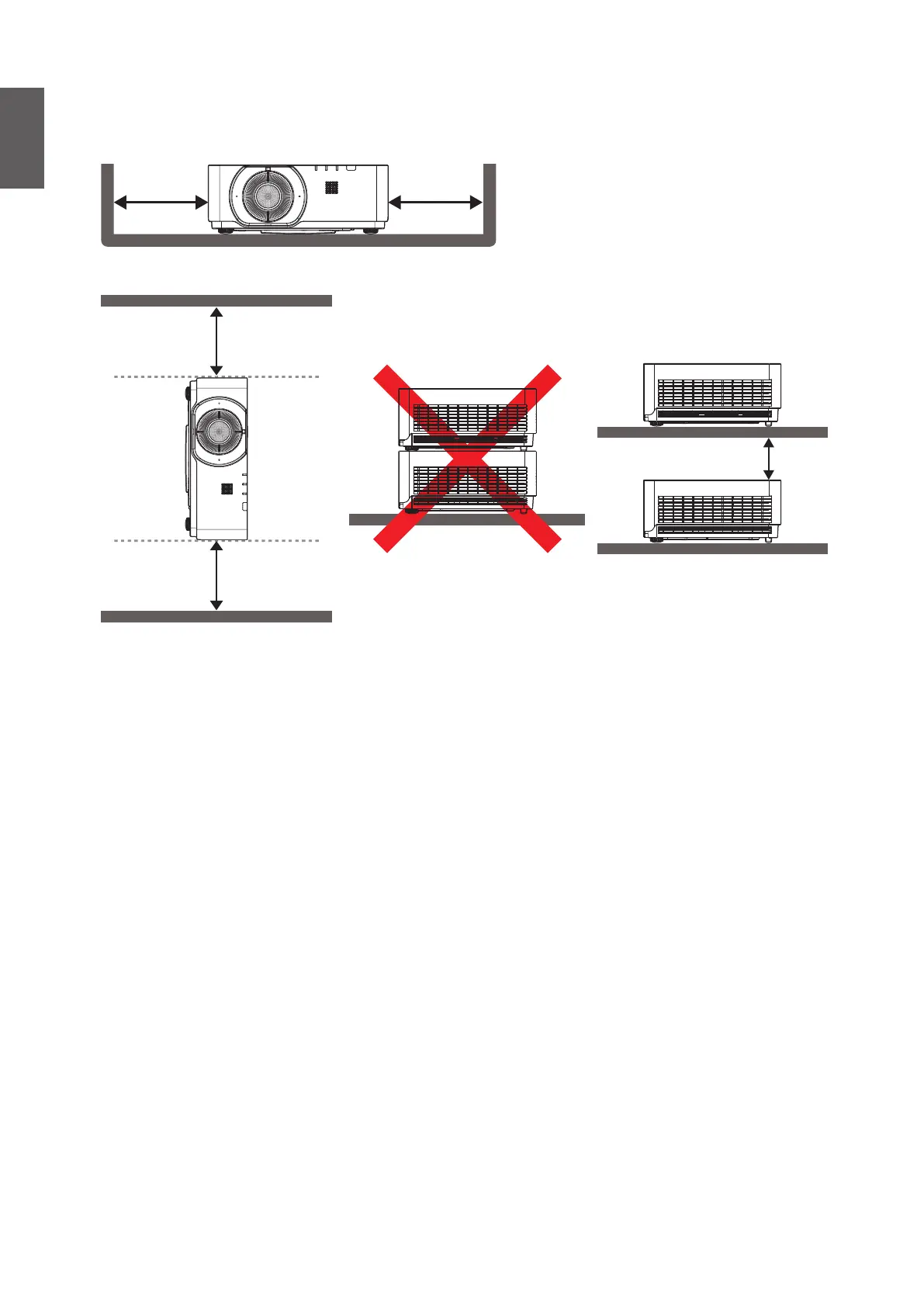 recycle exhaust air. Recycling exhaust air may cause the projector to shutdown even if the ambient