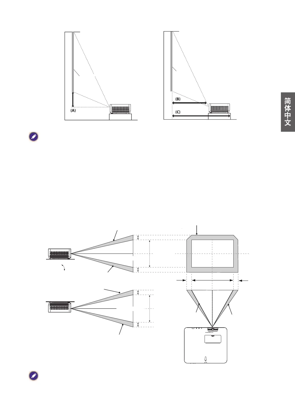 • 要获取更直观的说明,请访问 BenQ 计算器网站 http://projectorcalculator.benq.com/。