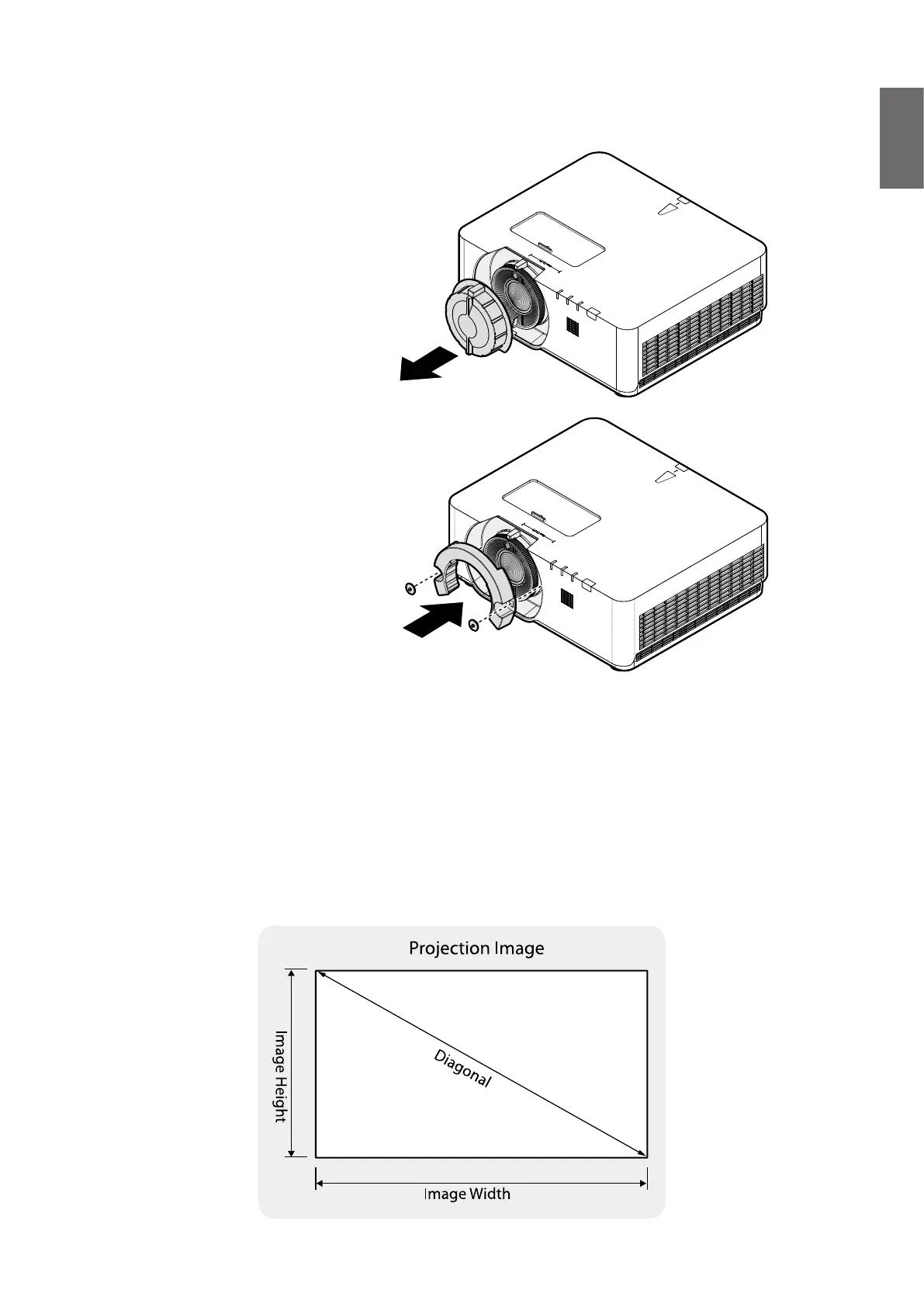 Refer to "Dimensions" on page 68 for the center of lens dimensions of this projector before