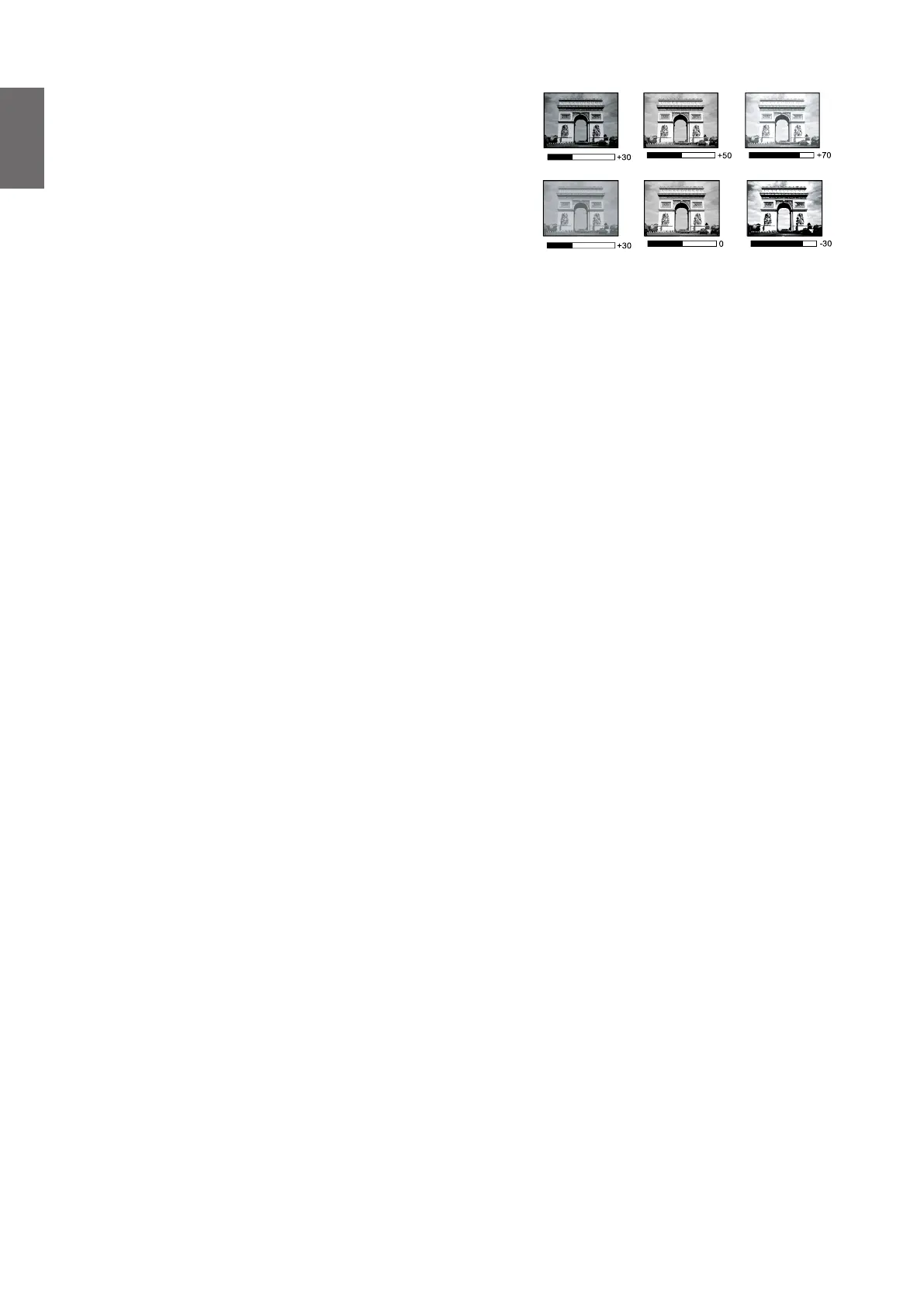The higher the value, the greater the contrast. Use this to set the peak white level after