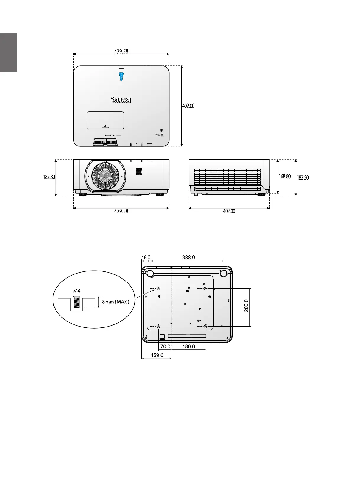 BenQ LU960ST - Dimensions; Attaching for Ceiling Mount