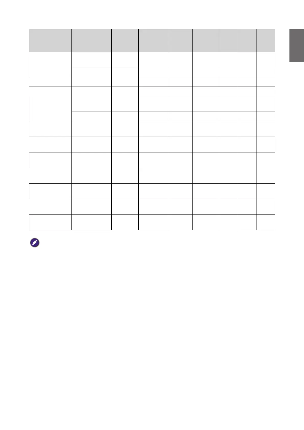 • There timing showing depend the EDID le and VGA graphic card limitation. It is possible that user cannot choose
