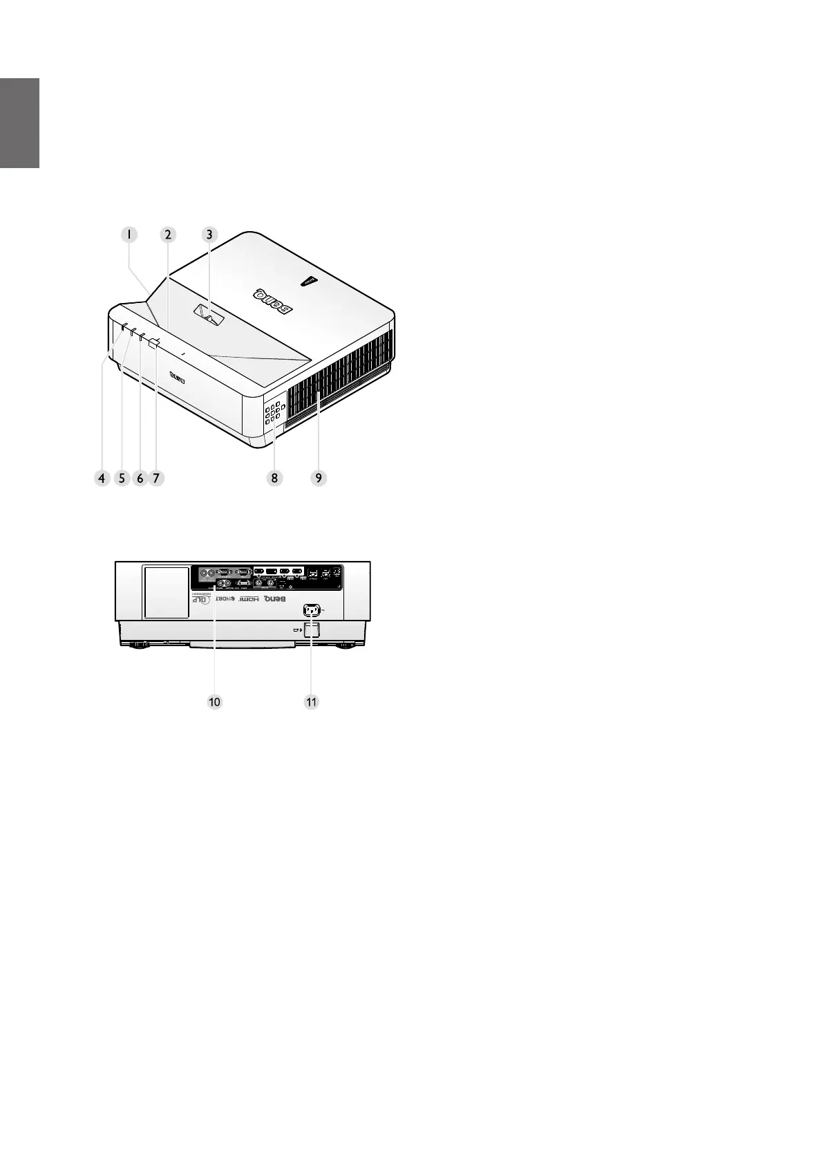 BenQ LU960UST - Introduction; Projector Exterior View; Front and Upper Side View; Rear View