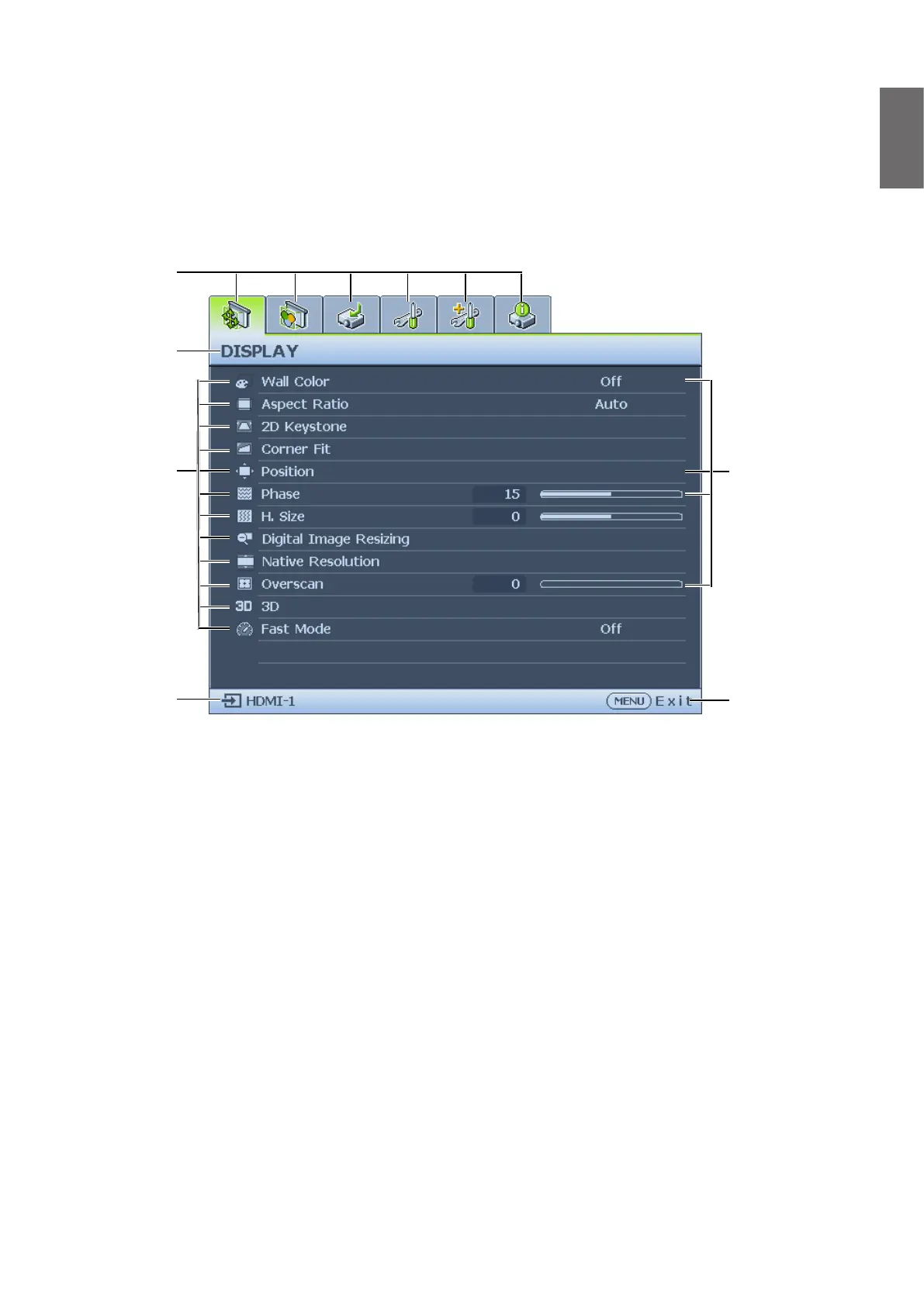 Available menu items may vary depending on the connected video sources or specied settings.