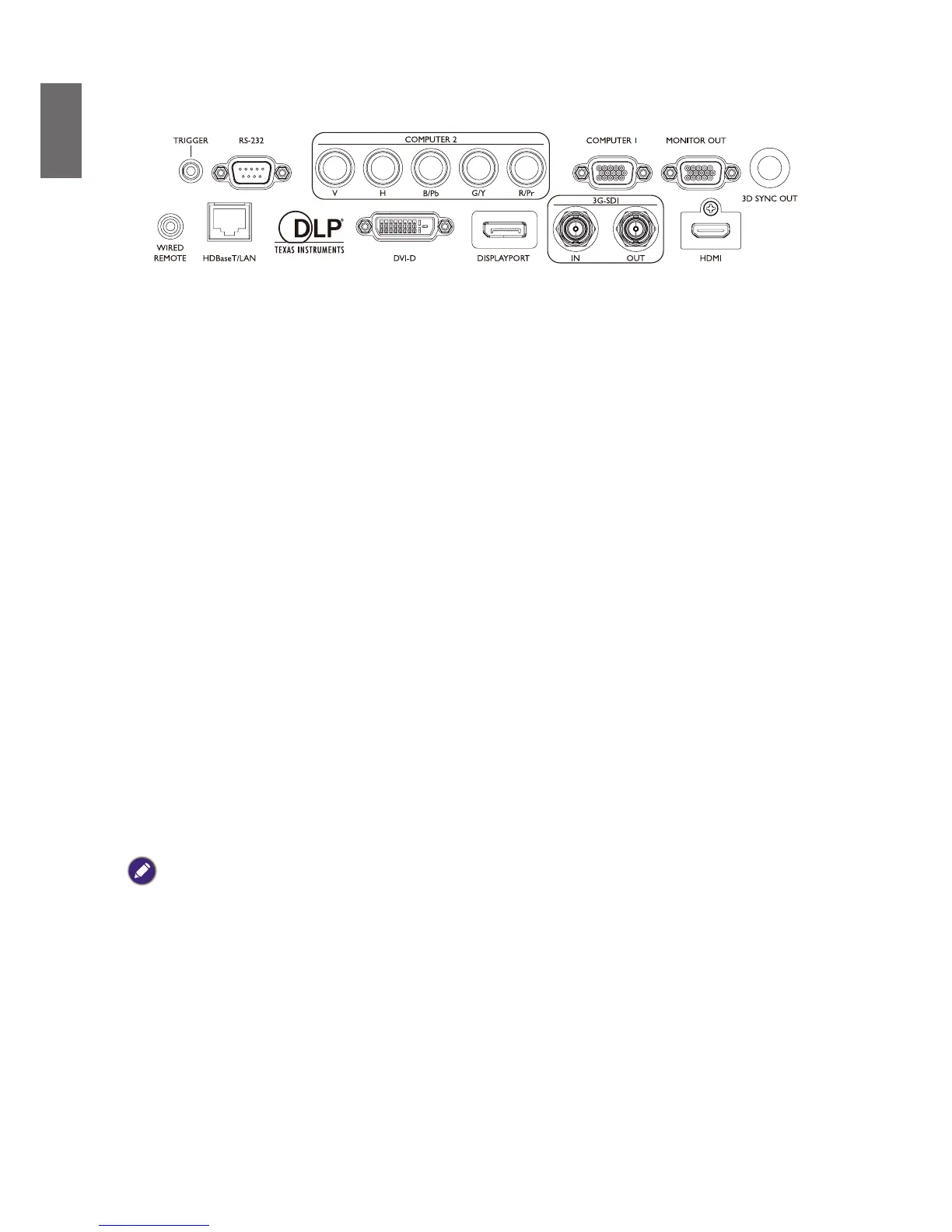 Standard 9-pin D-sub interface for connection to PC control system and projector maintenance.