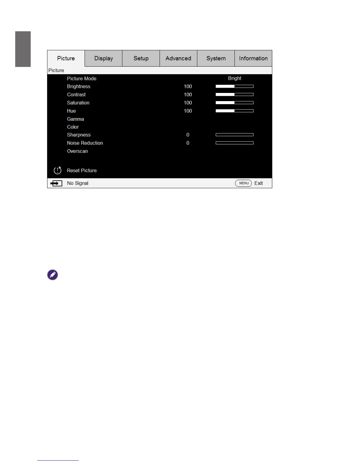 OSD menu - Picture