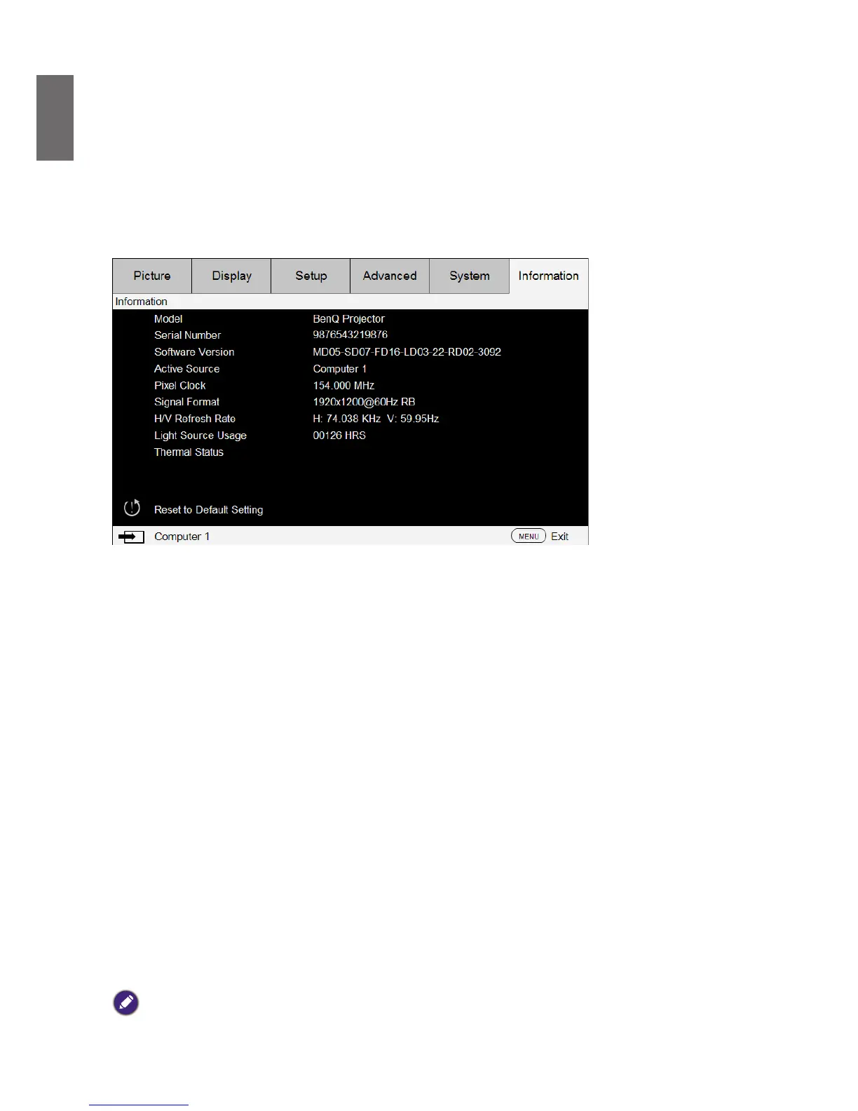 OSD menu - Information