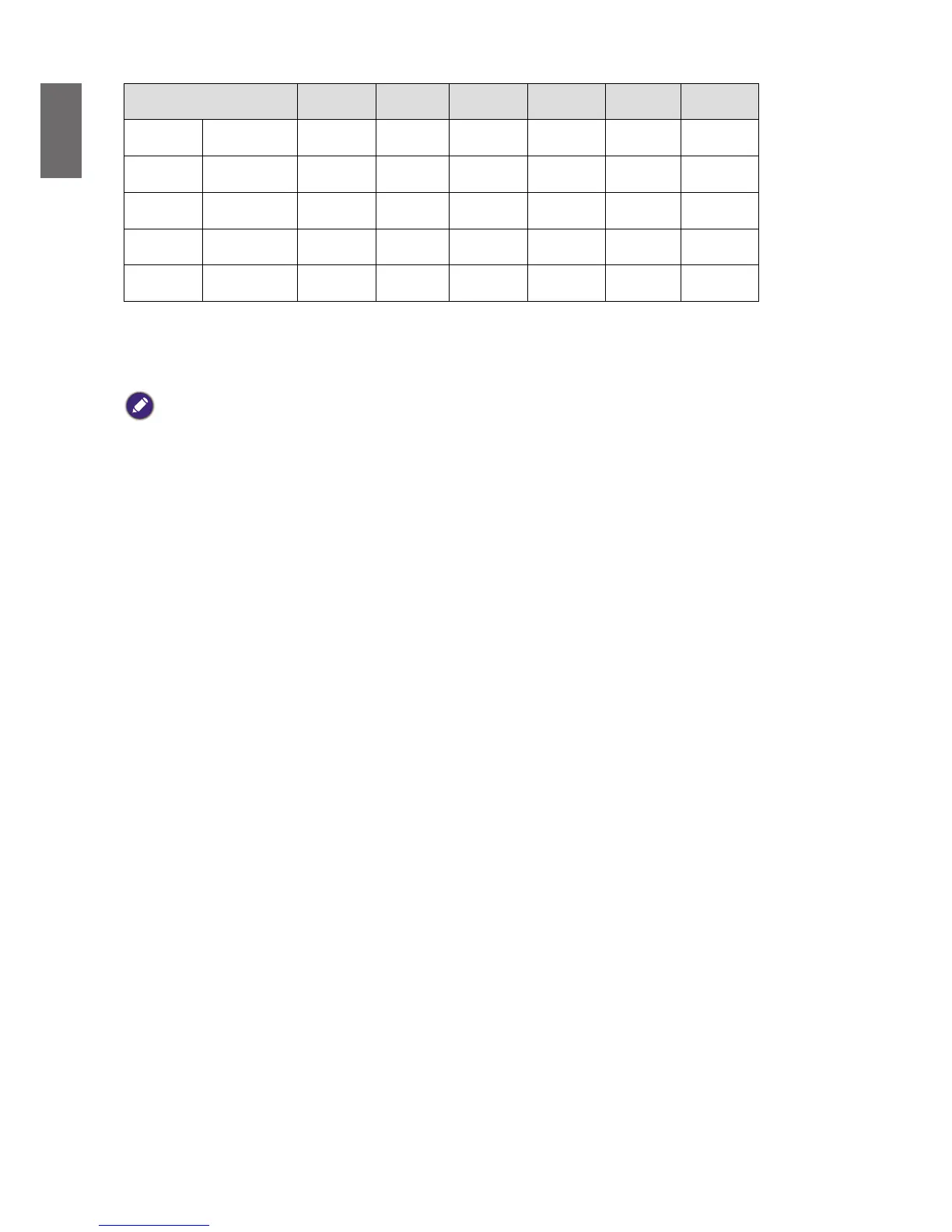 • Signals other than those specied in the table above may not be displayed correctly. If this should happen, change