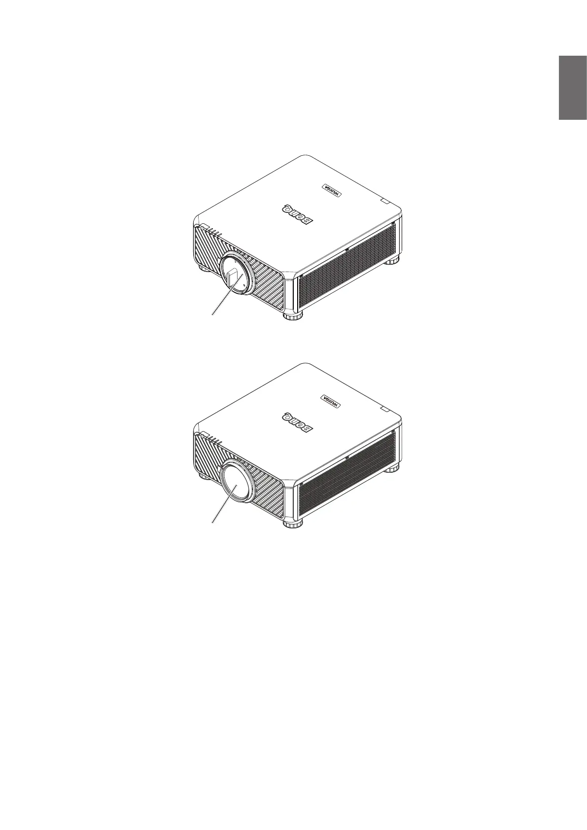 1. If the projector and lens were purchased separately, remove the anti-dust cap before use and