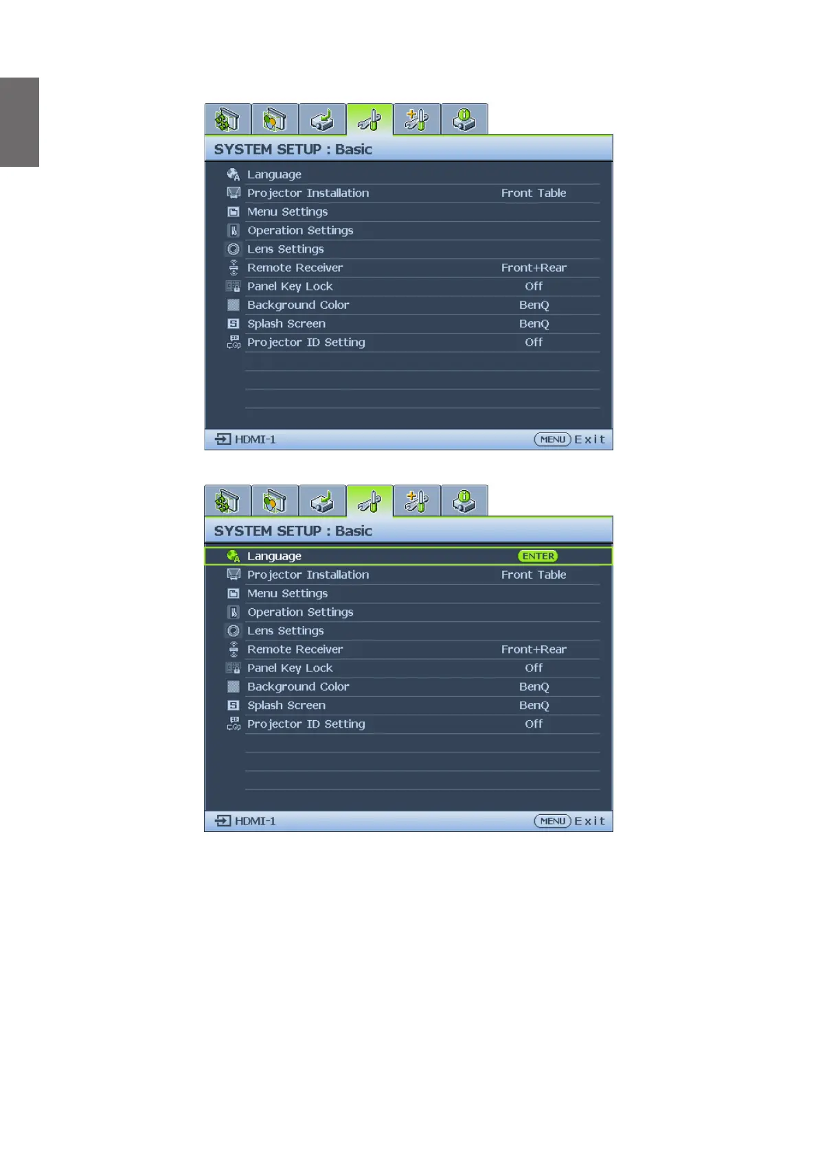 4. Press ENTER twice* on the projector or remote control to leave and save the settings.