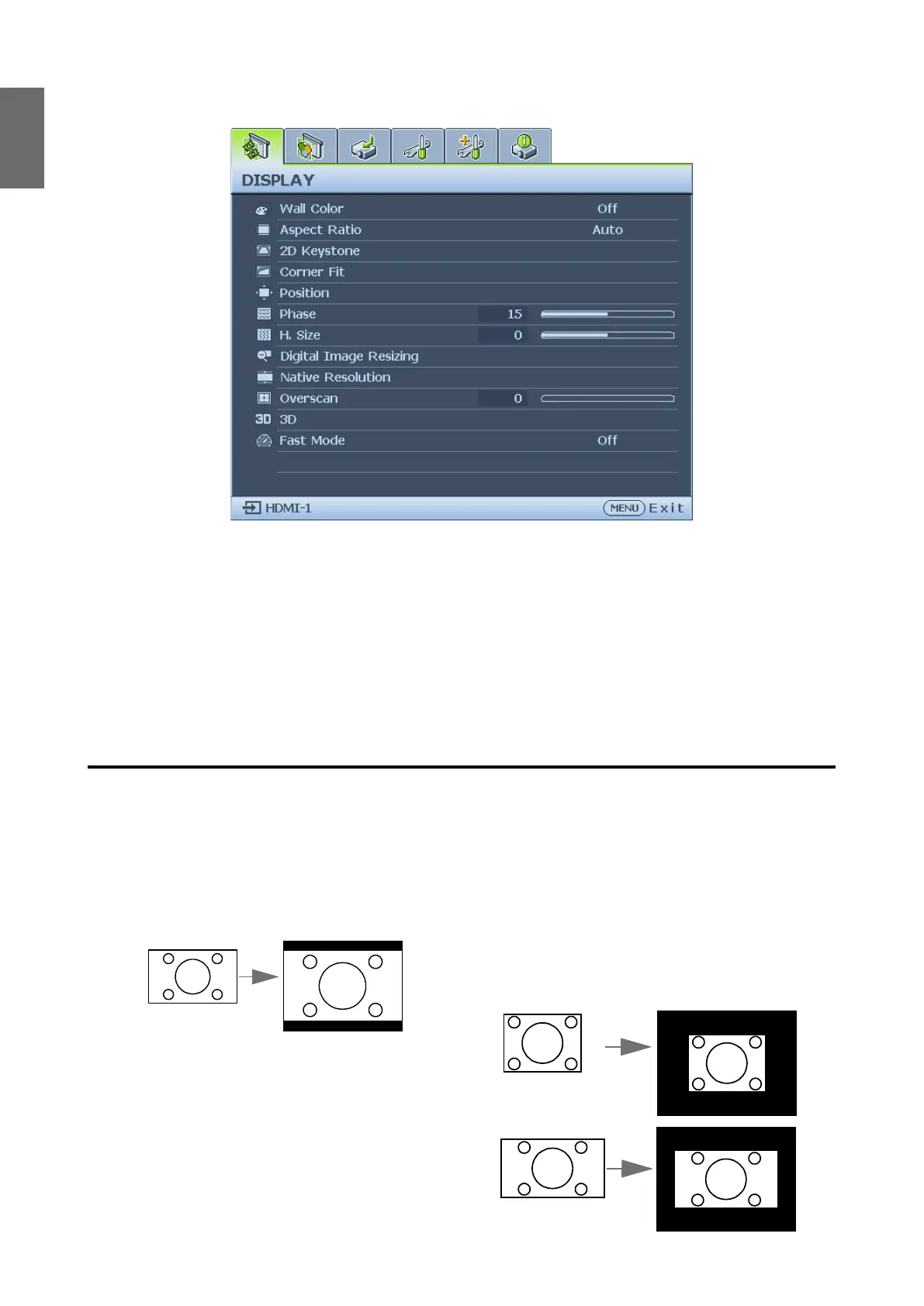 1. Press ASPECT to show the current setting.