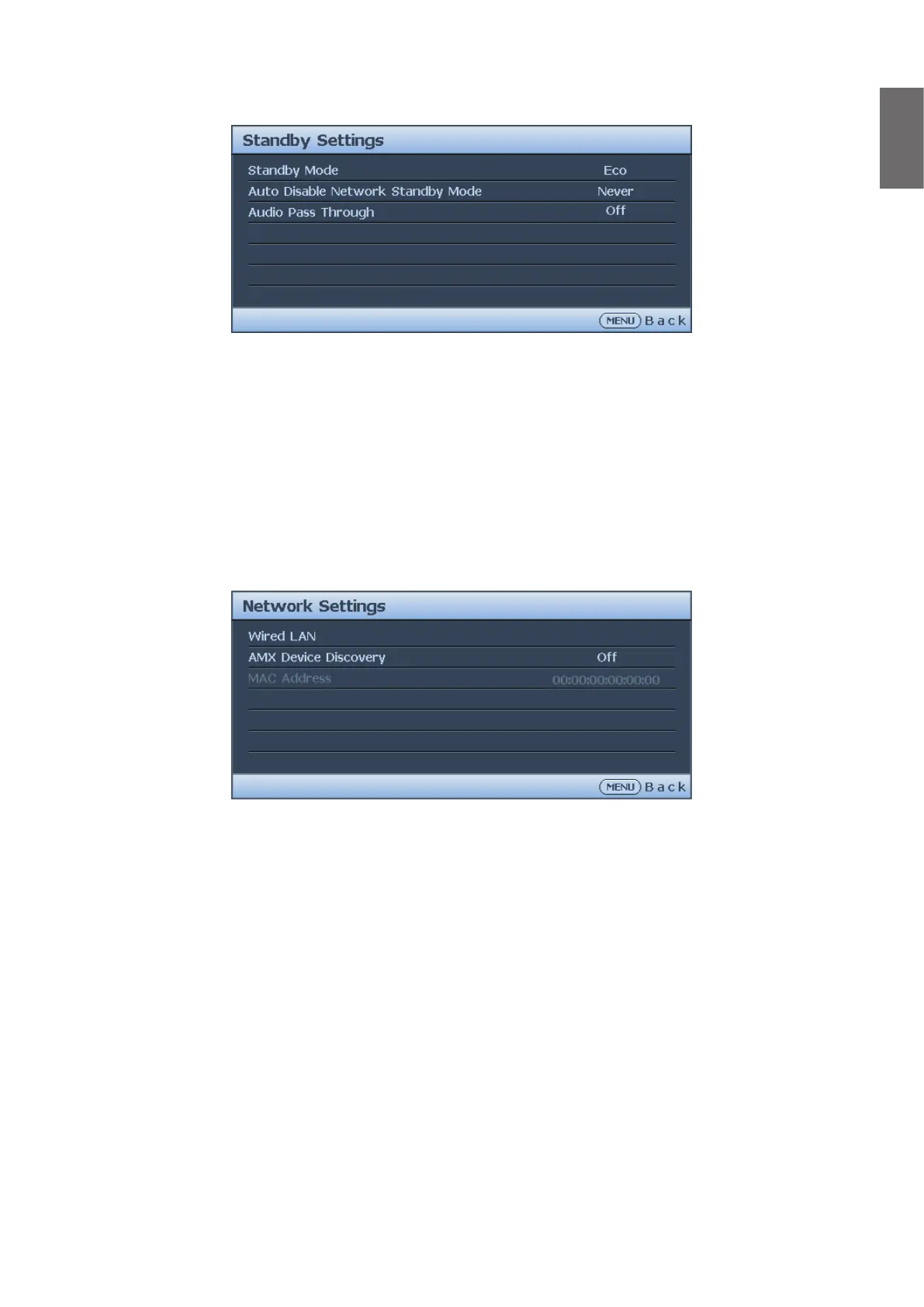 enabled, the projector can be detected by an AMX controller.