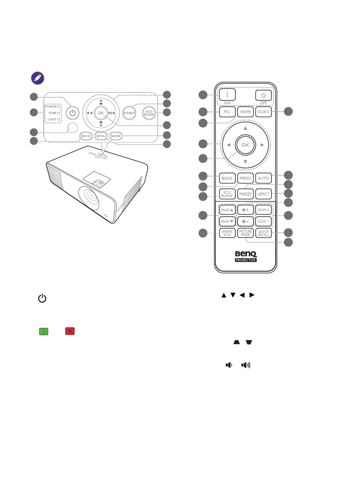 Toggles the projector between standby