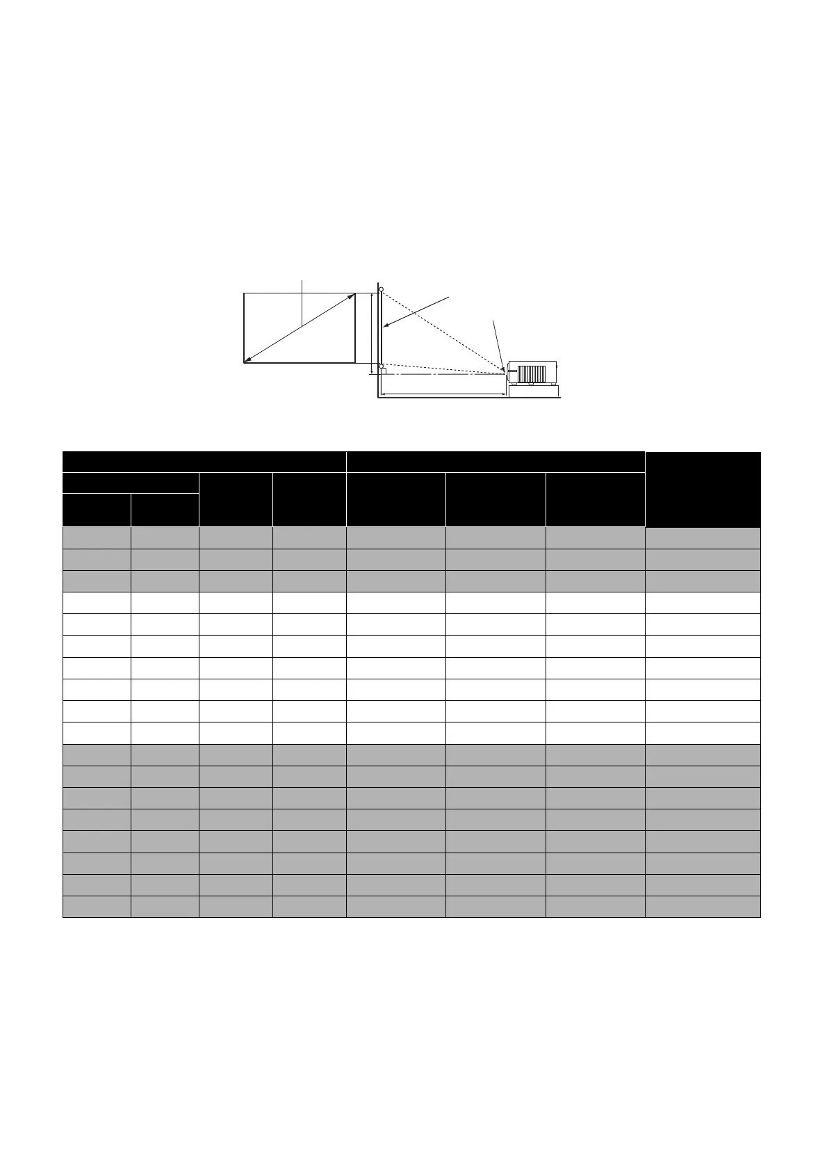 Screen size Projection distance (mm)