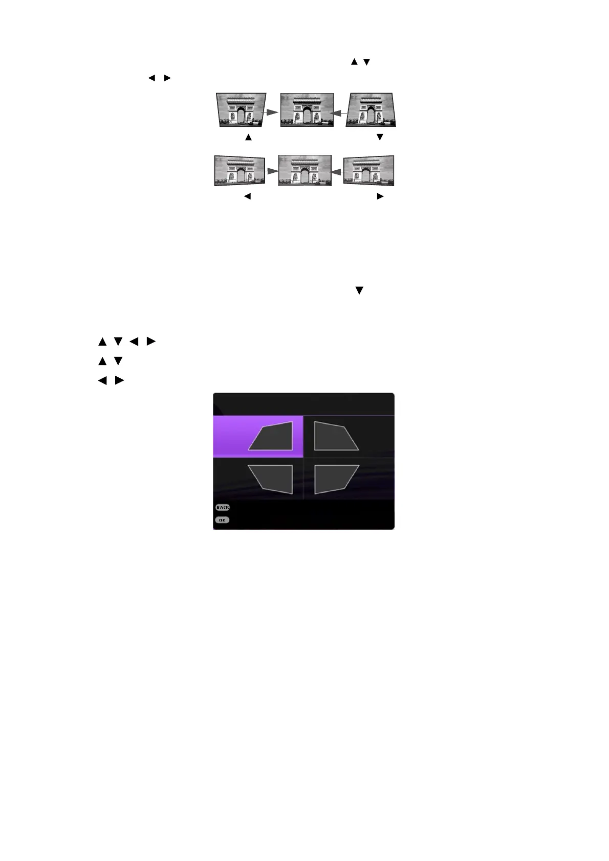 2. After the 2D Keystone correction page displays. Use / to correct vertical keystone