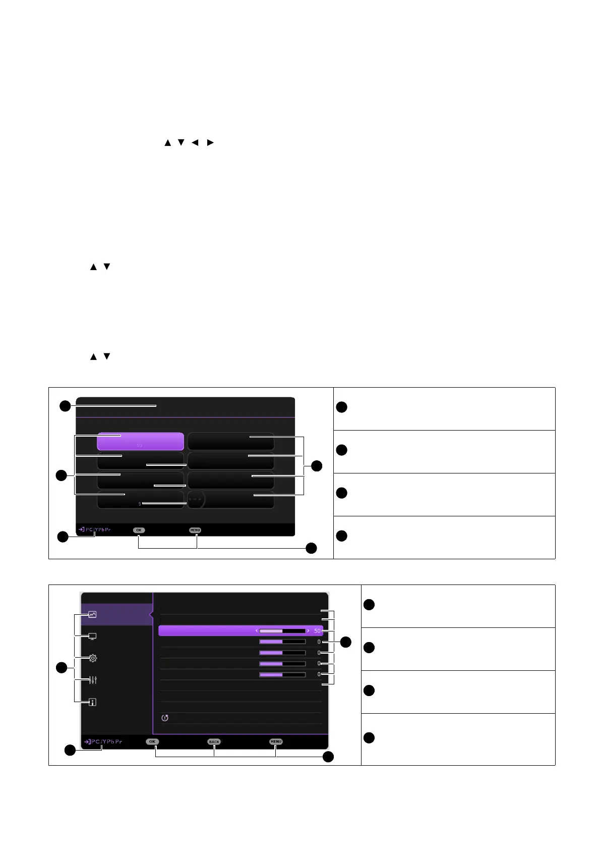 The projector is equipped with 2 types of On-Screen Display (OSD) menus for making various