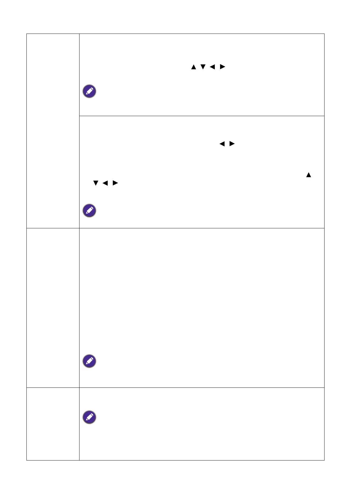 size. Press the directional arrows ( , , , ) on the projector or remote