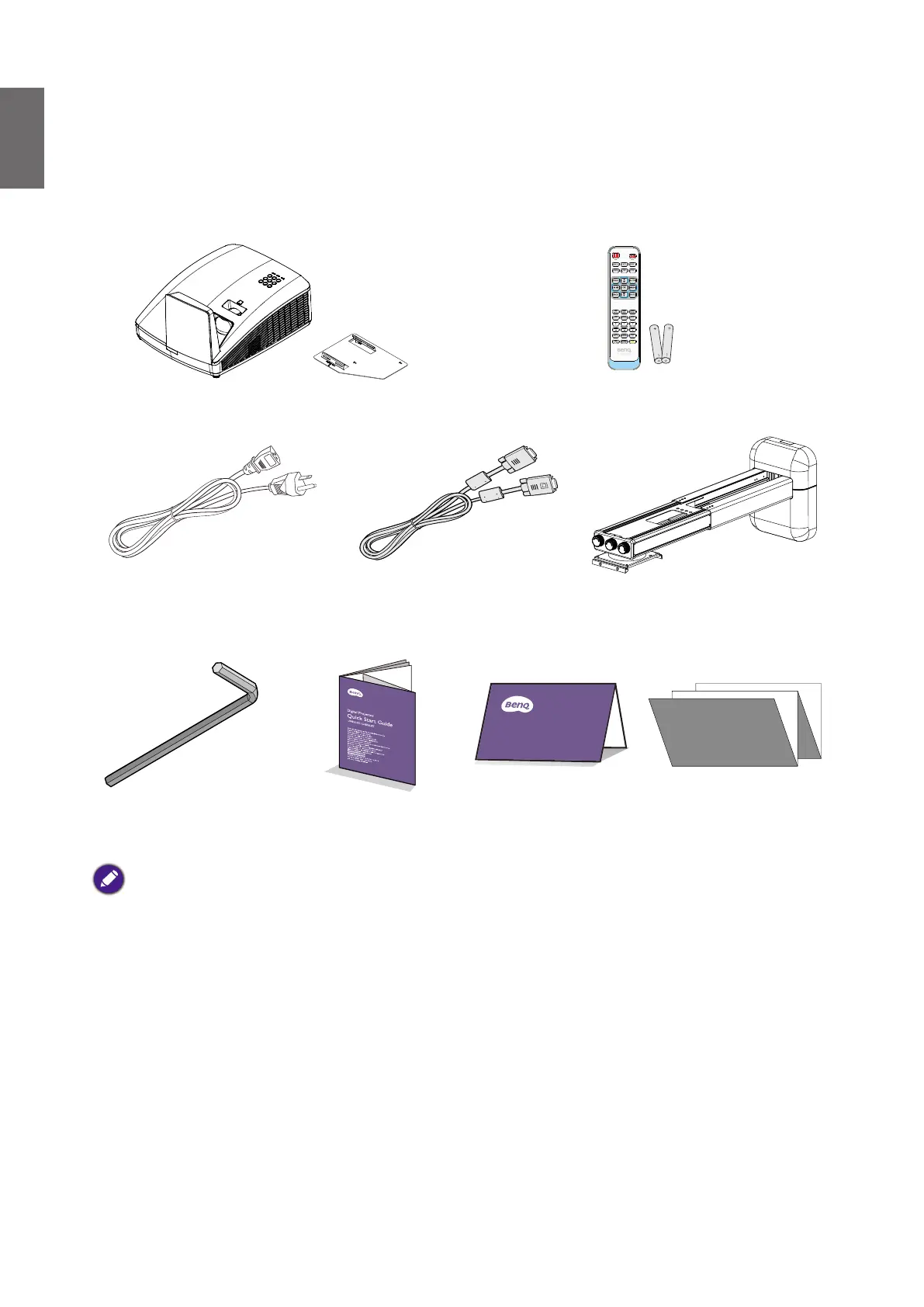 Hex key (2.5mm)** Quick start guide Warranty card* Installation chart for
