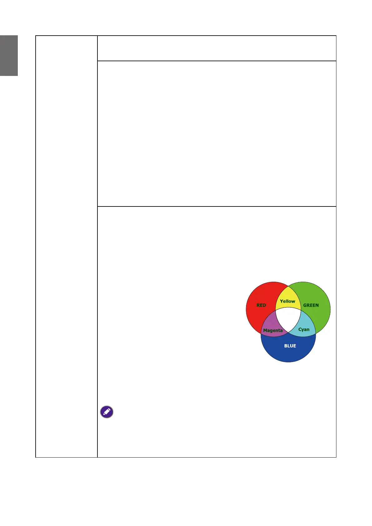 • Primary Color: Selects a color from among R (Red), G (Green), B (Blue),