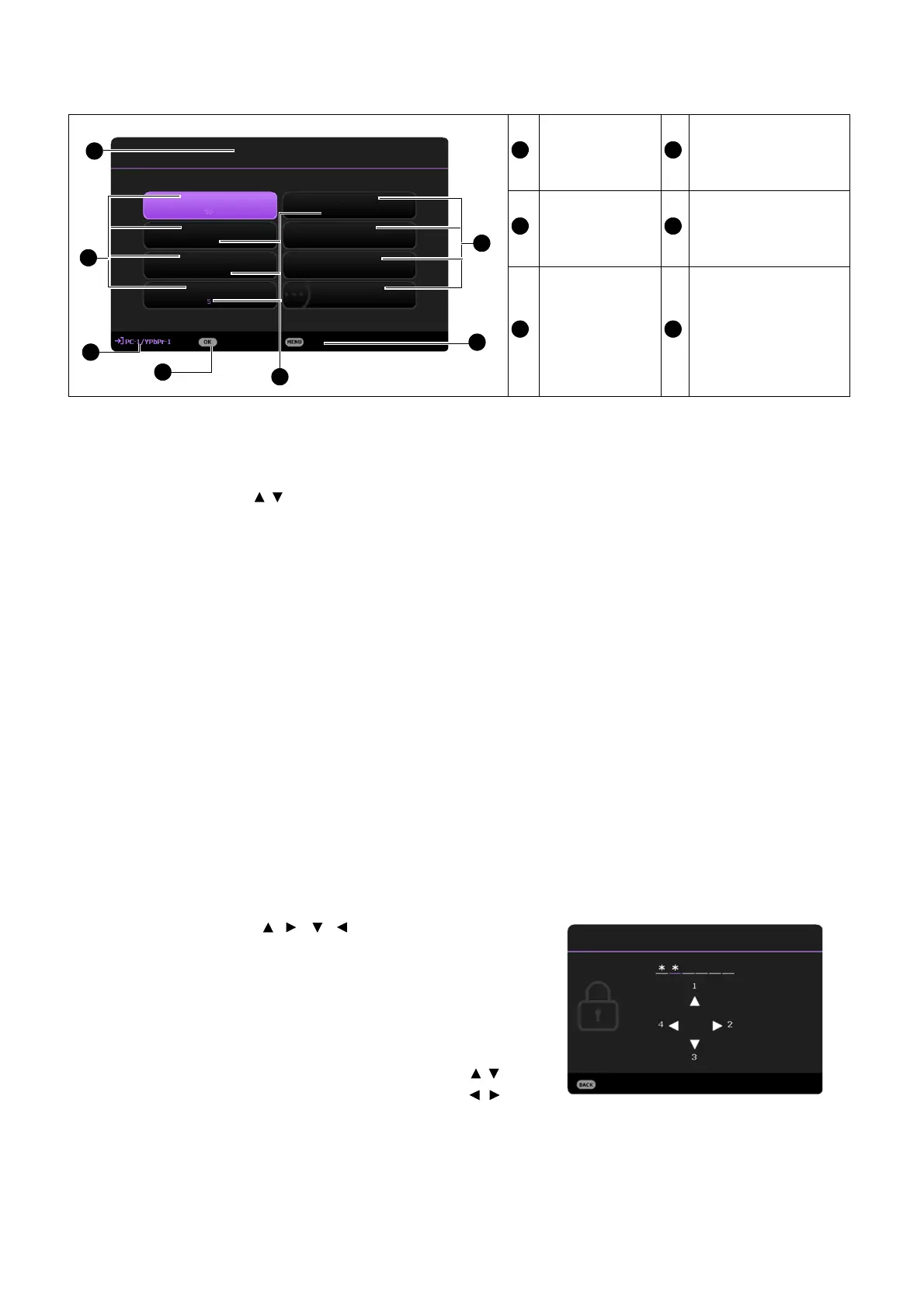 3. The four arrow keys ( , , , ) respectively represent