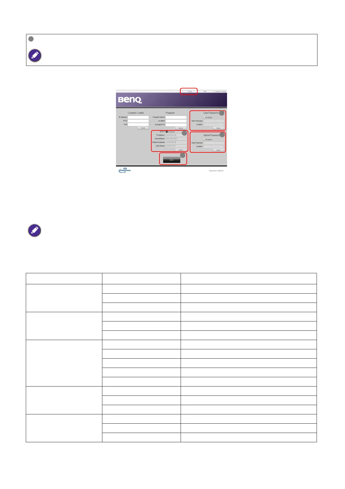 After making the adjustments, press the Send button and the data will be saved in the projector.