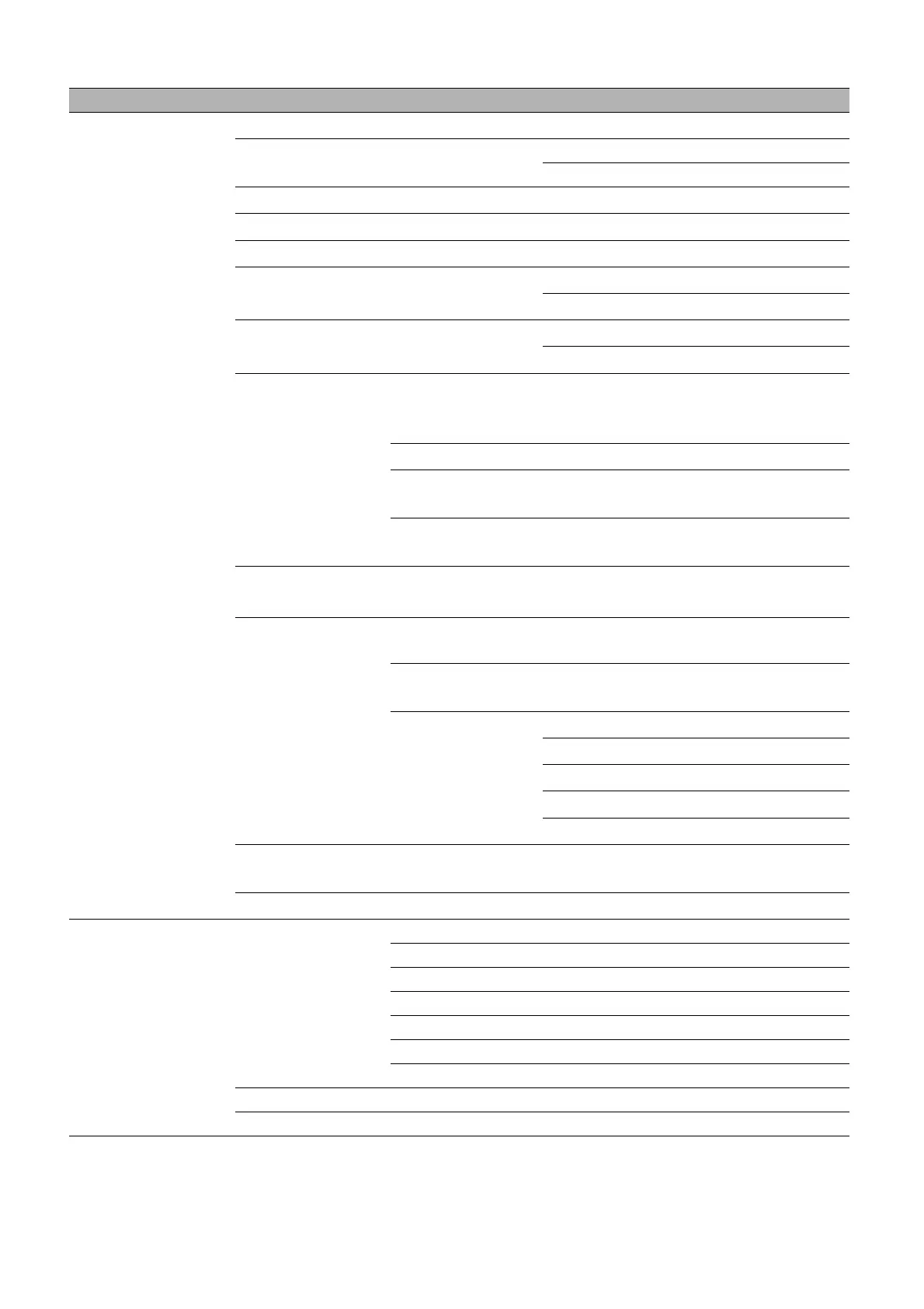 Main menu Submenu Options