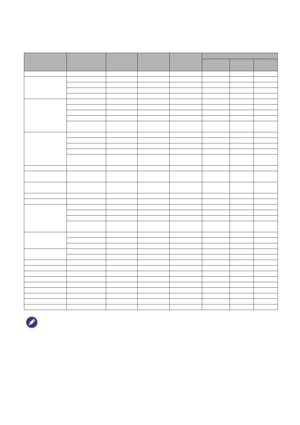 Supported timing for PC input