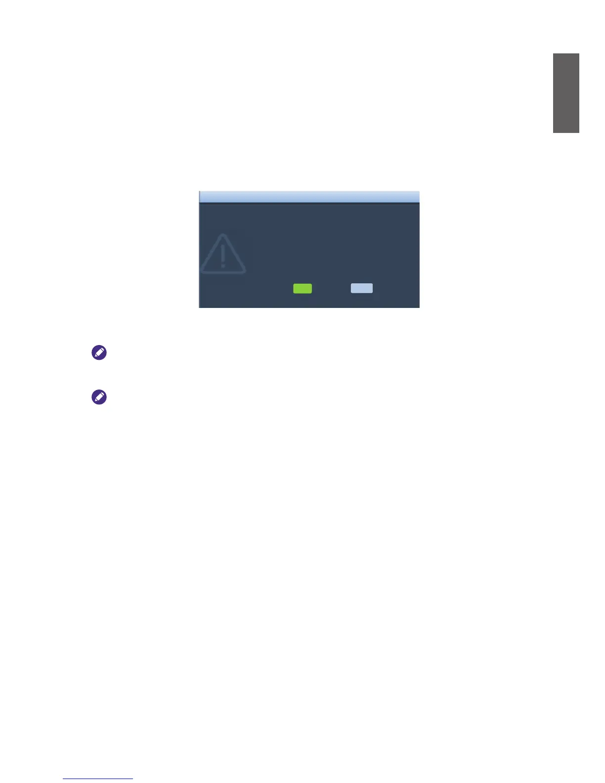 2. A reminder pops up when you reboot the projector next time if you select Cancel until you select
