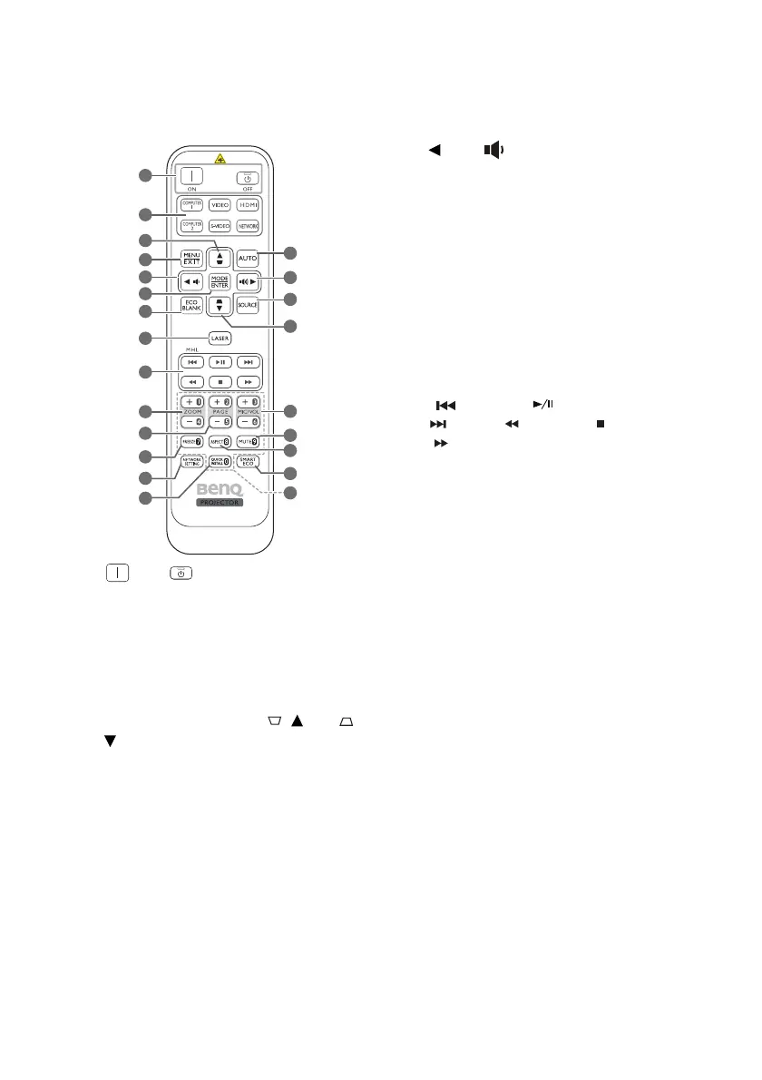 Toggles the projector between standby