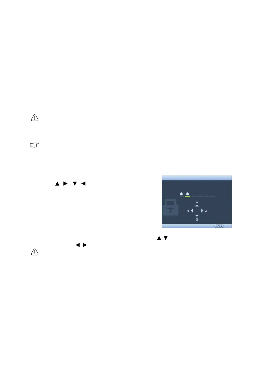 Once a password has been set and the power on lock is activated, the projector cannot be used unless the