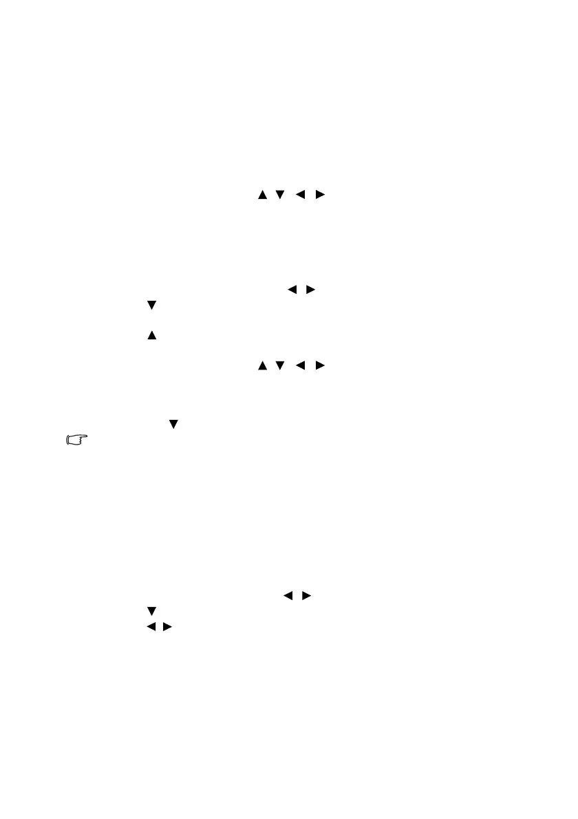 press the directional arrows ( , , , ) on the projector or remote control to