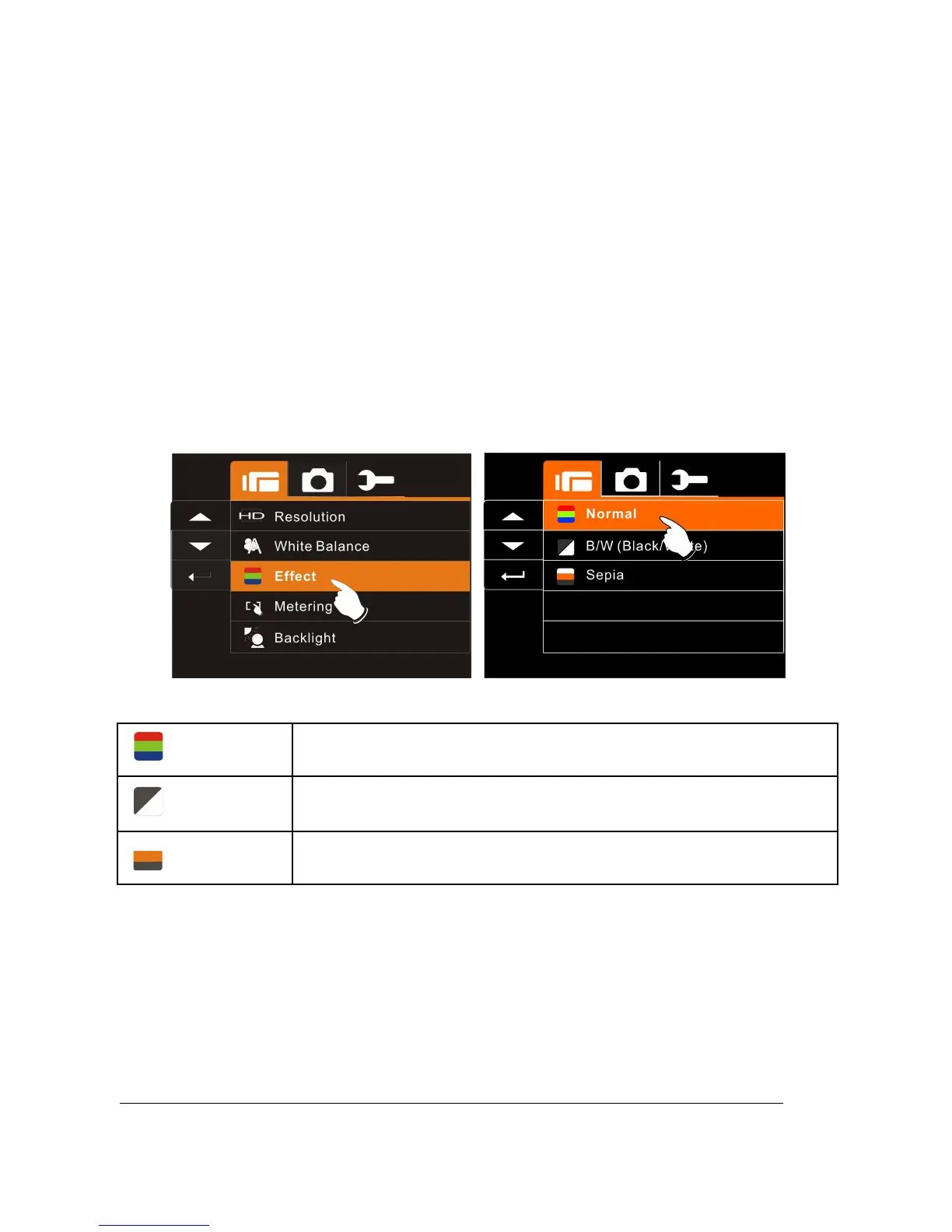 Button to select Normal, B/W or Sepia. Press