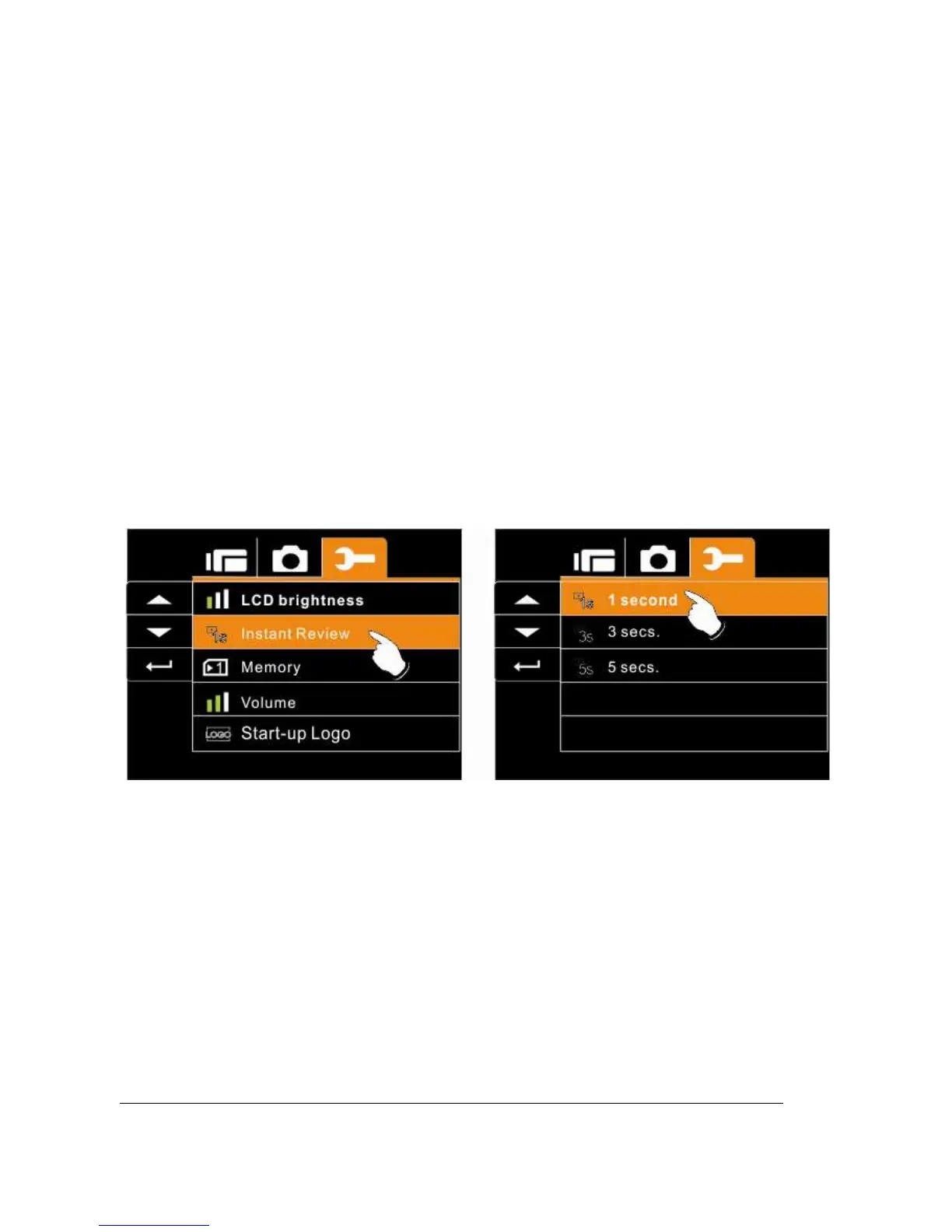 Button to select 1 sec., 3 secs, or 5 secs.