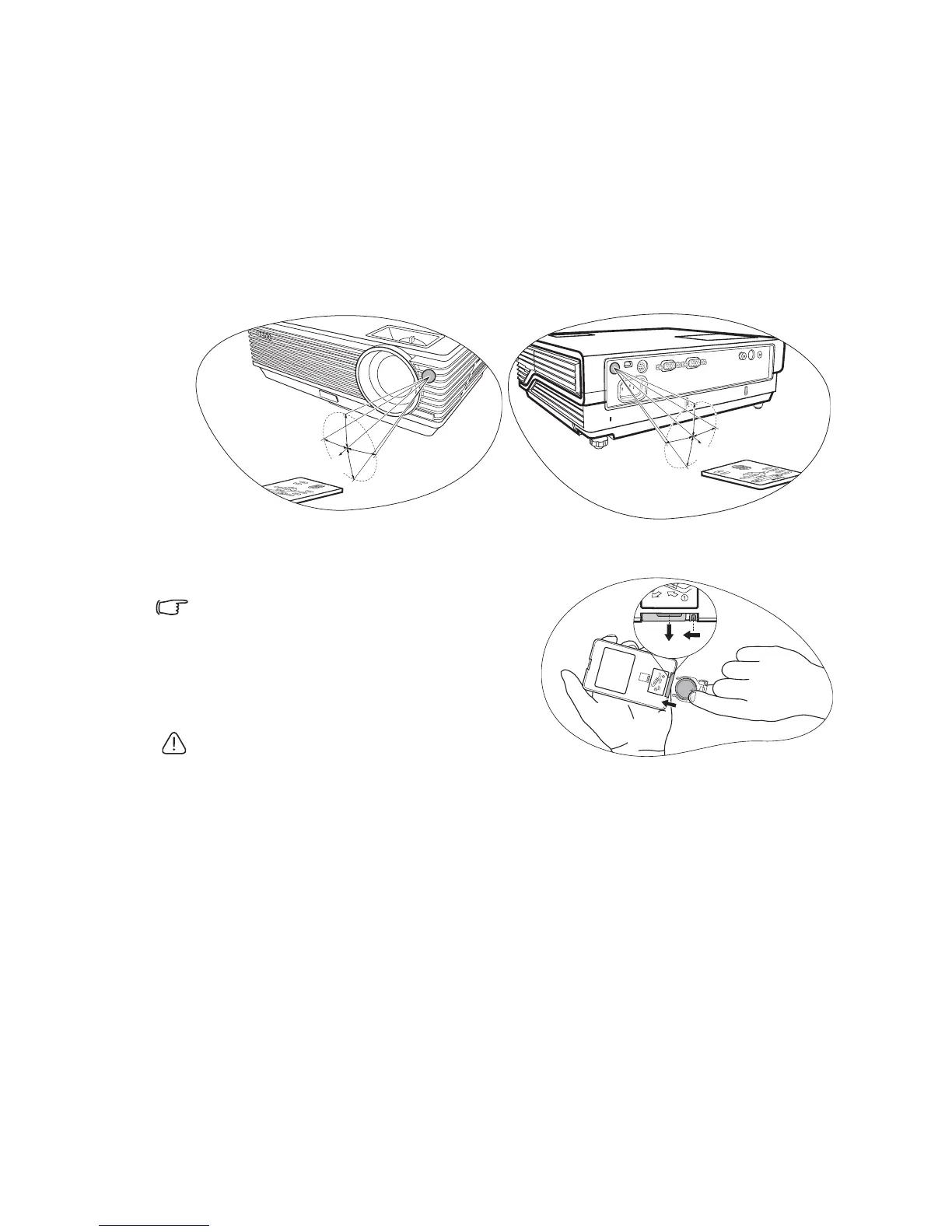 projector's IR remote control sensors to function correctly. The distance between the remote