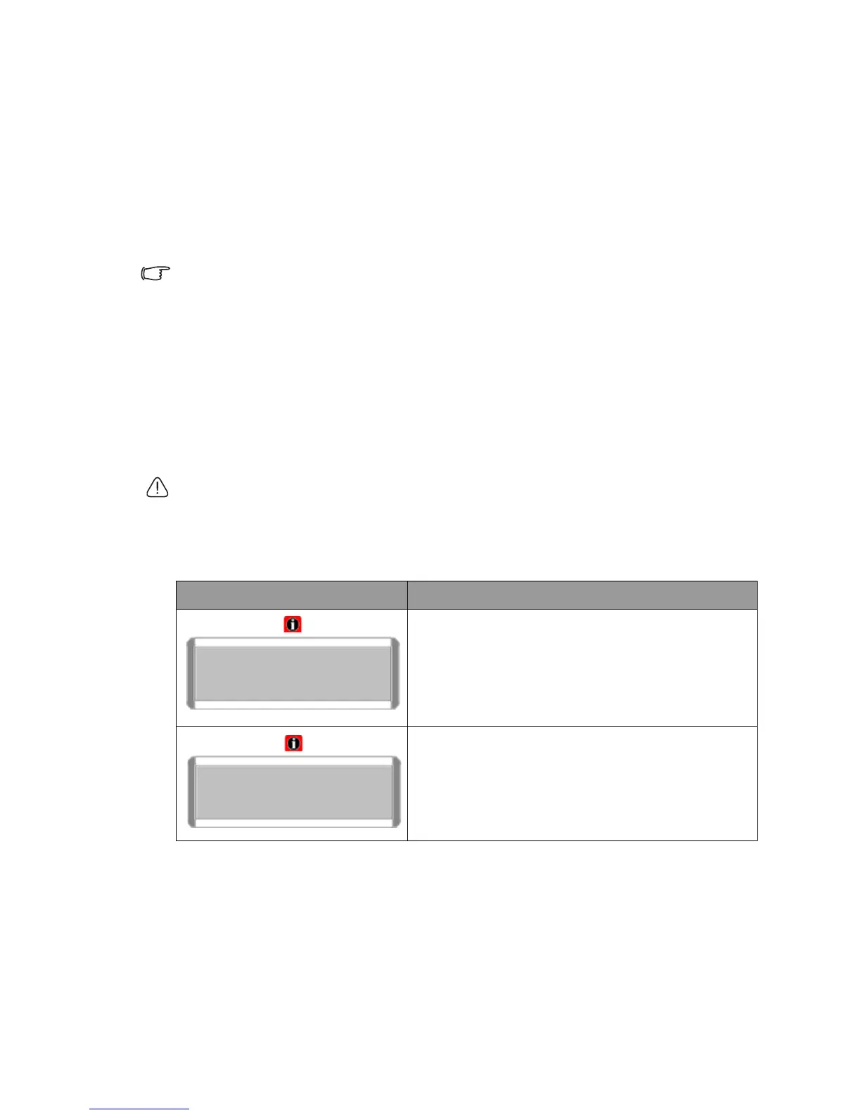 For more detailed information on projector warnings, please refer to "Indicators" on page