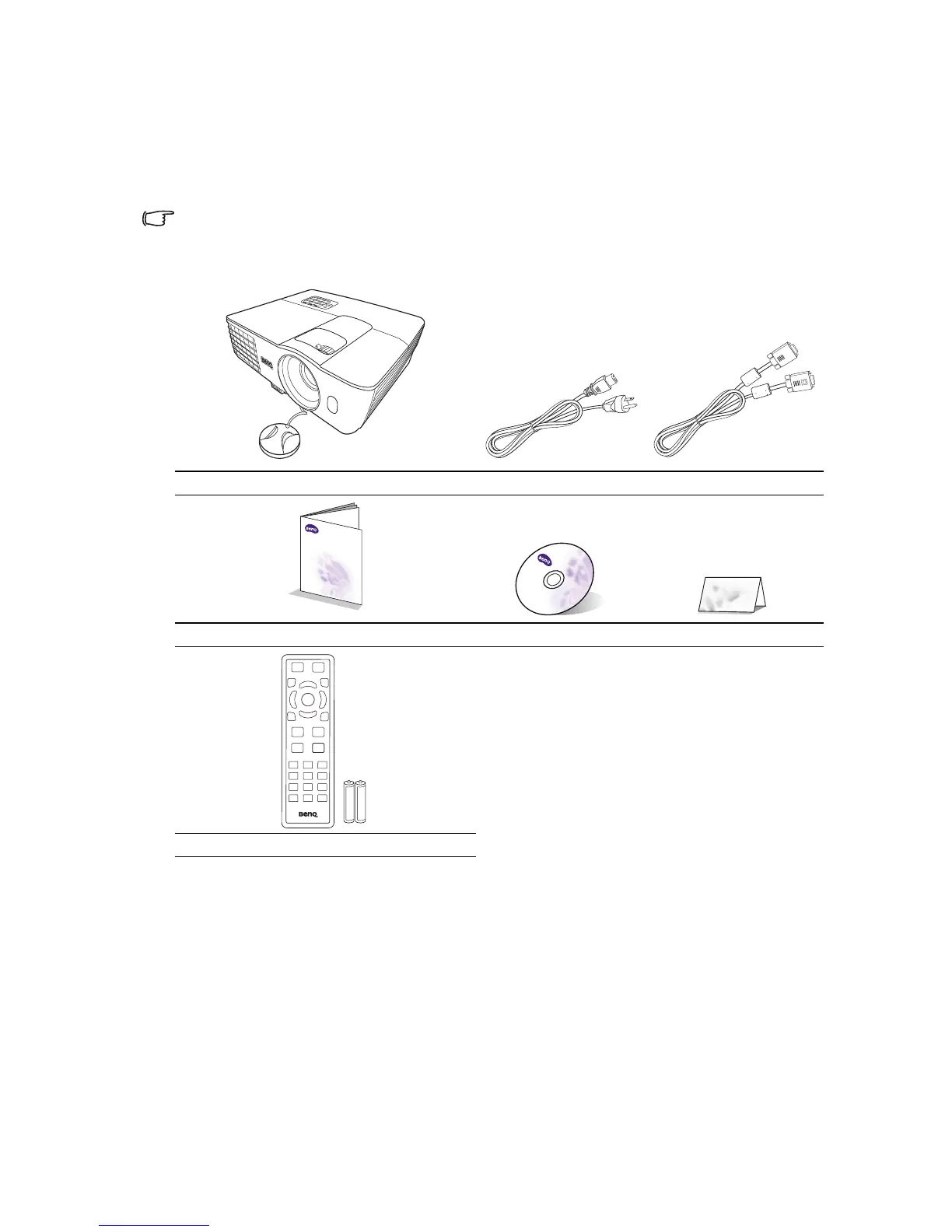 Carefully unpack and verify that you have all of the items shown below. If any of these items