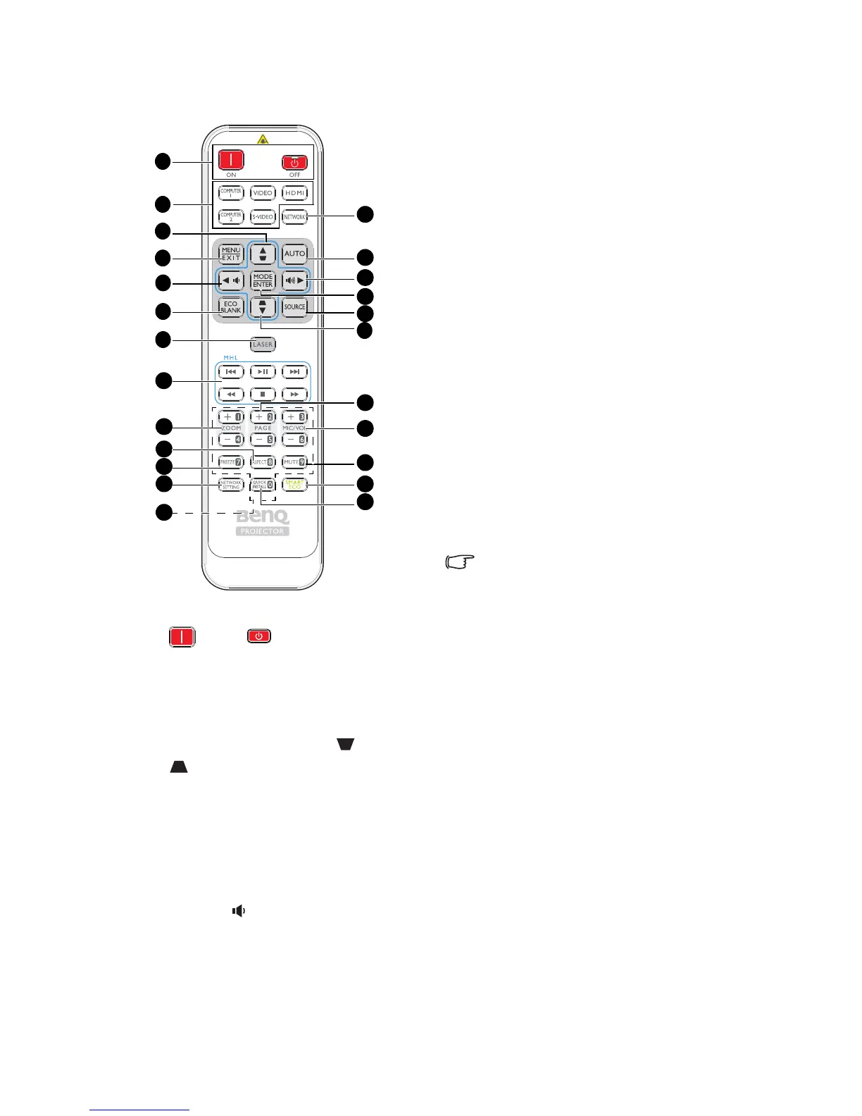 Toggles the projector between standby