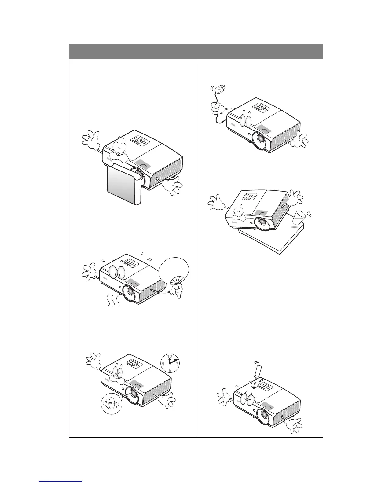 6. Do not block the projection lens with