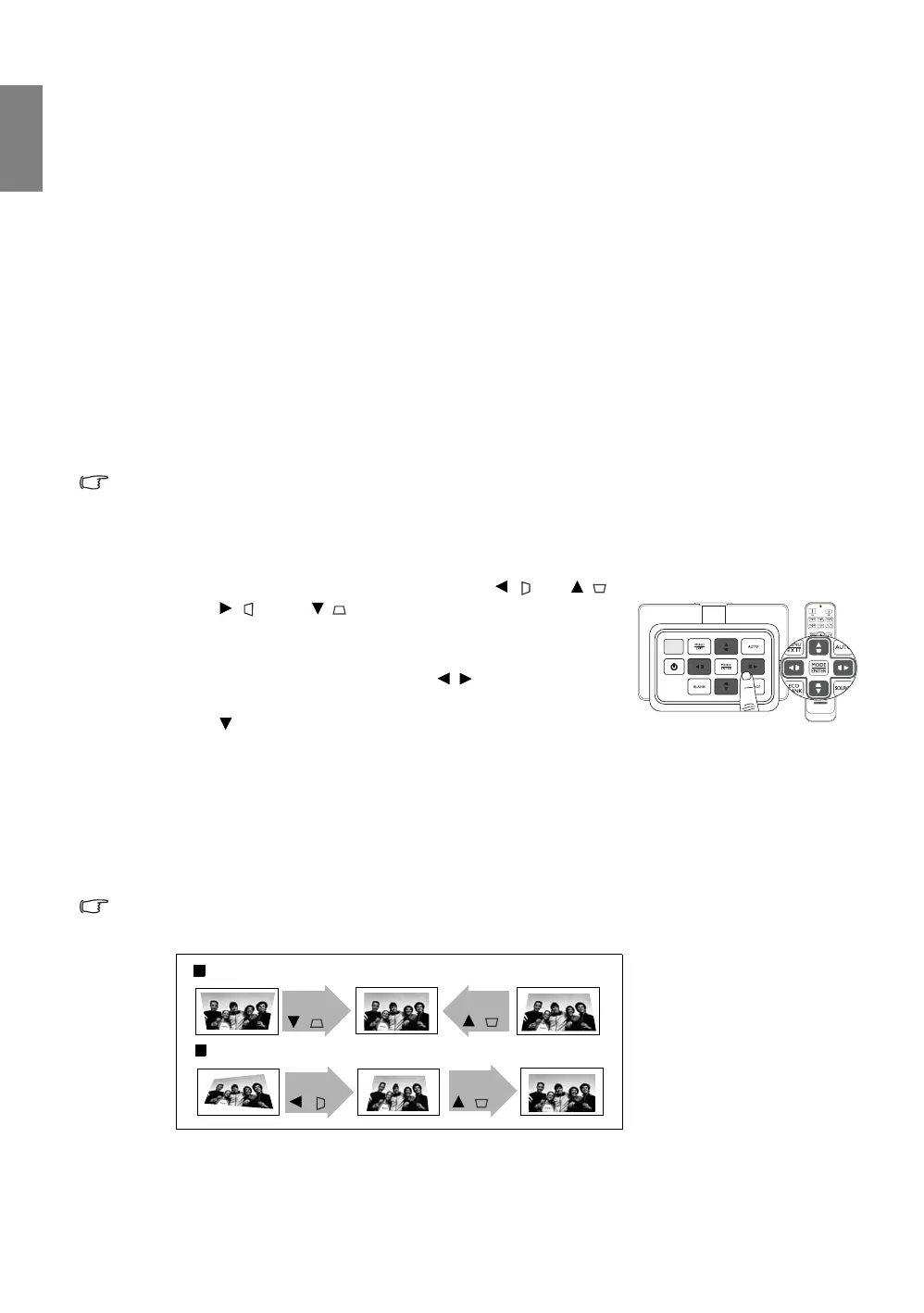 iii. Press the key whose keystone icon is opposite to the shape of the projected picture. Continue