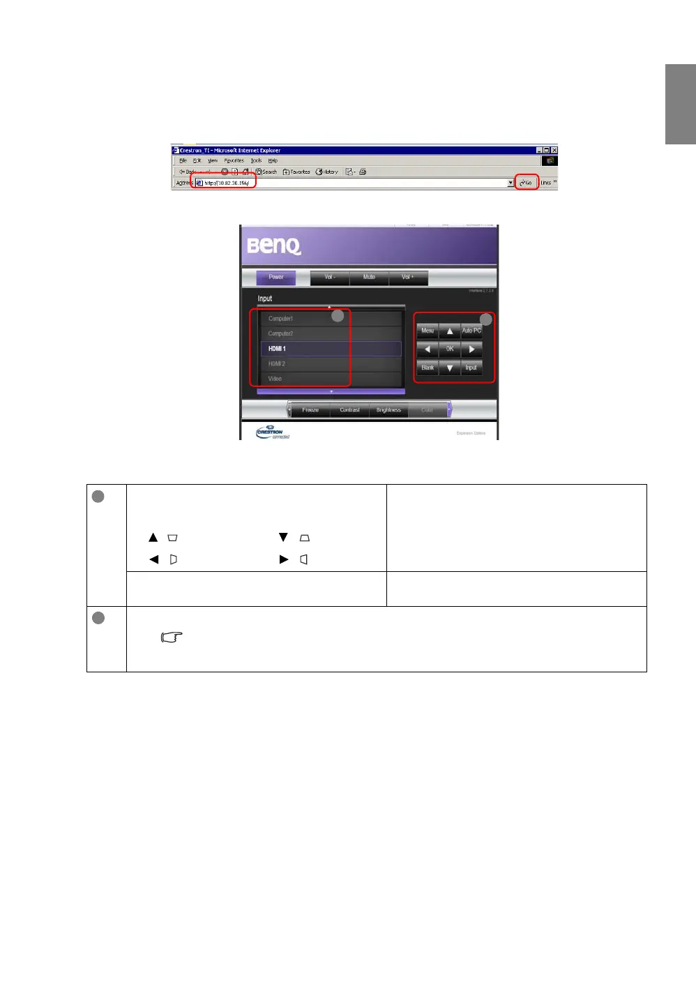 1. Enter the address of the projector in the address bar of your browser and click Go.