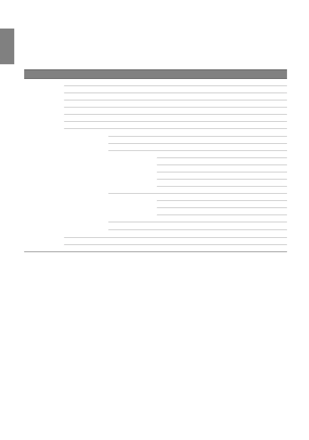 Main menu Sub-menu Options
