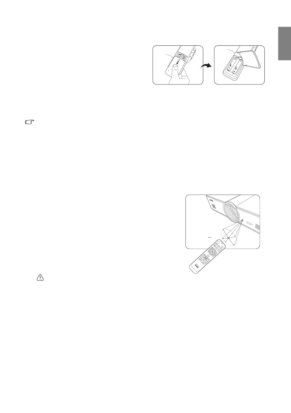 • If the remote control will not be used for an extended period of time, remove the batteries to avoid